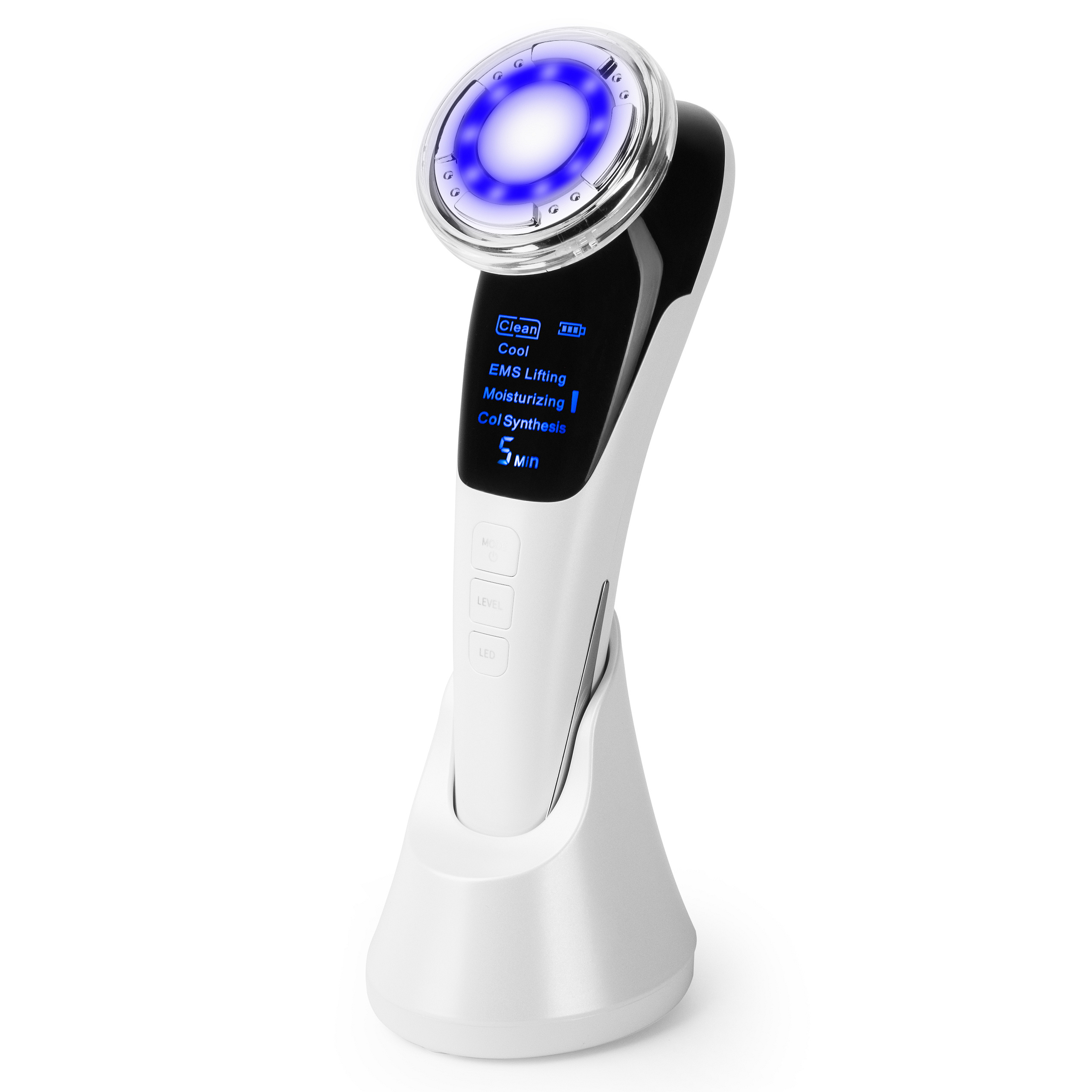 5 trybów pracy (oczyszczanie, lifting, krioterapia, nawilżanie, syntezę kolagenu)