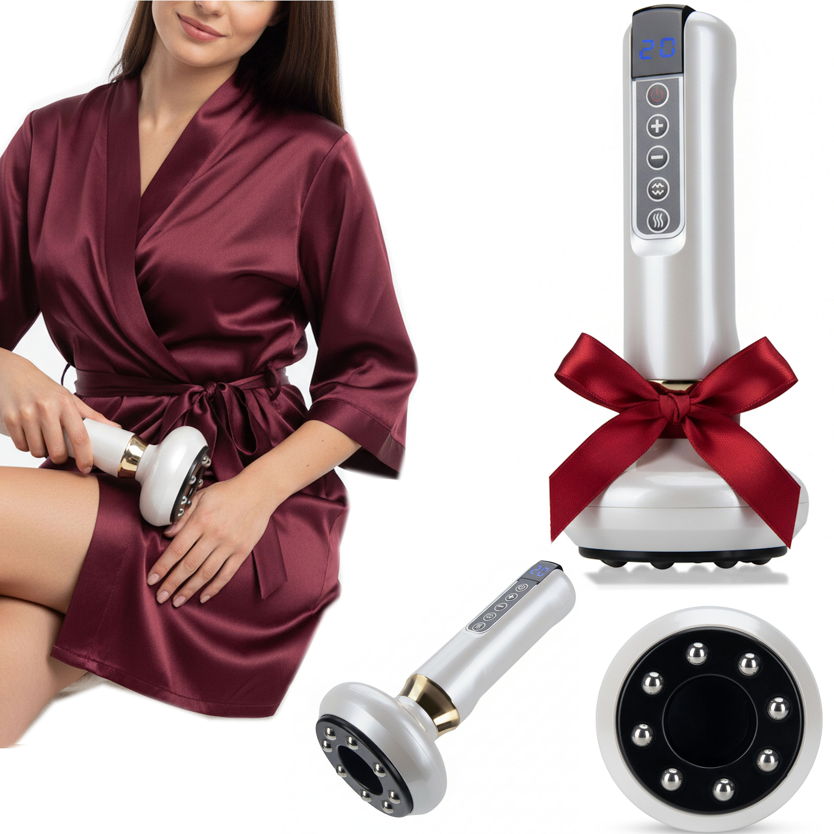 Bezprzewodowy masażer antycellulitowy Lebula z funkcją grzanej bańki chińskiej - kolor biały