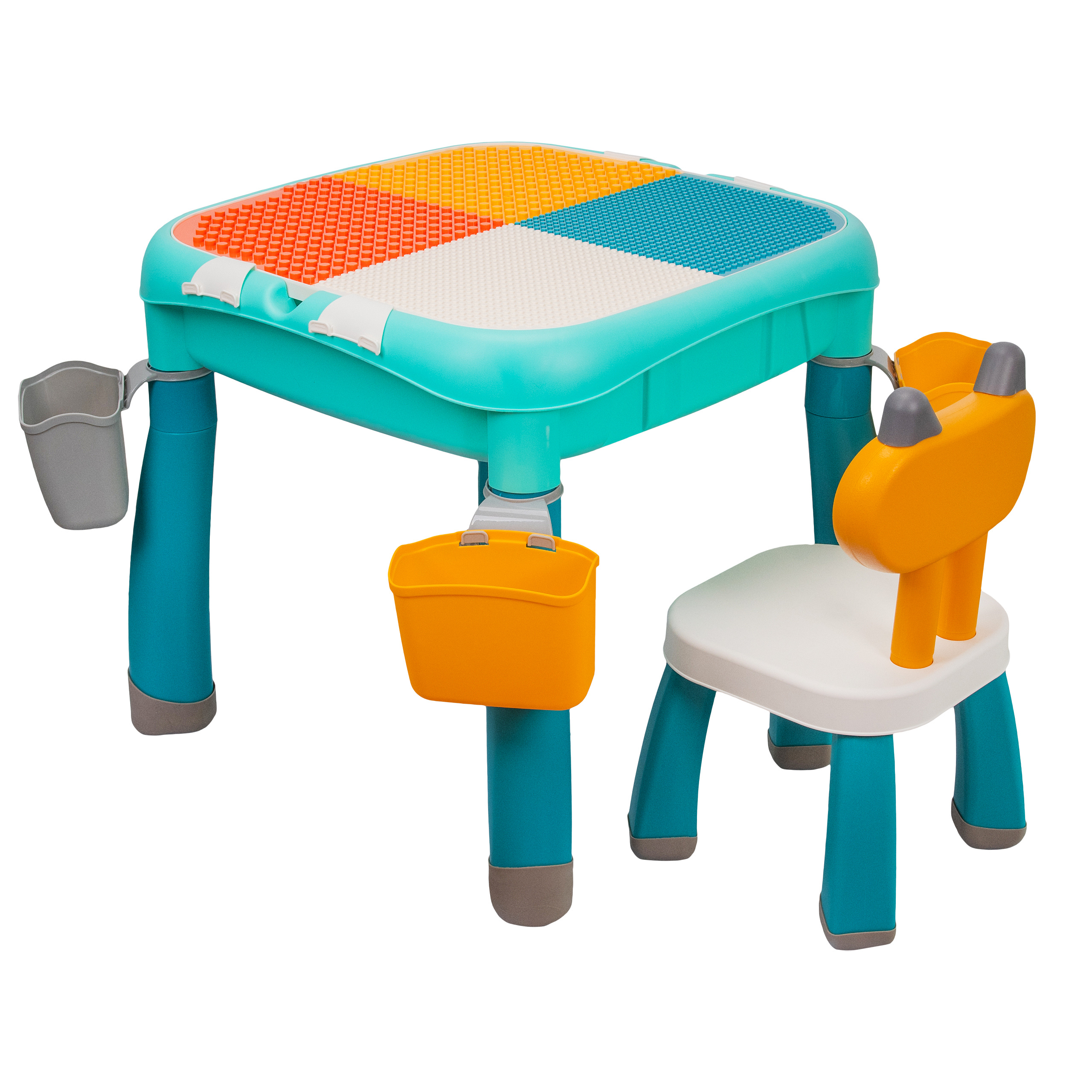 Je snadný na údržbu a nebojí se vlhkosti a špíny. Desky jsou kompatibilní se stavebnicemi známých značek a většinou typů stavebnic. Stůl na hraní pro děti obsahuje vysokou židličku a otočné boční organizéry na tužky, fixy a značkovače. Rozměry pracovní plochy 55x55 cm.Naše stoly na hraní pro děti jsou vyrobeny z nejkvalitnějších materiálů a jsou zcela bezpečné pro jemné dětské ruce. Prefabrikované části jsou vyrobeny z netoxického plastu, bez BPA a lze je snadno čistit horkou nebo studenou vodou. Žádné ostré rohy