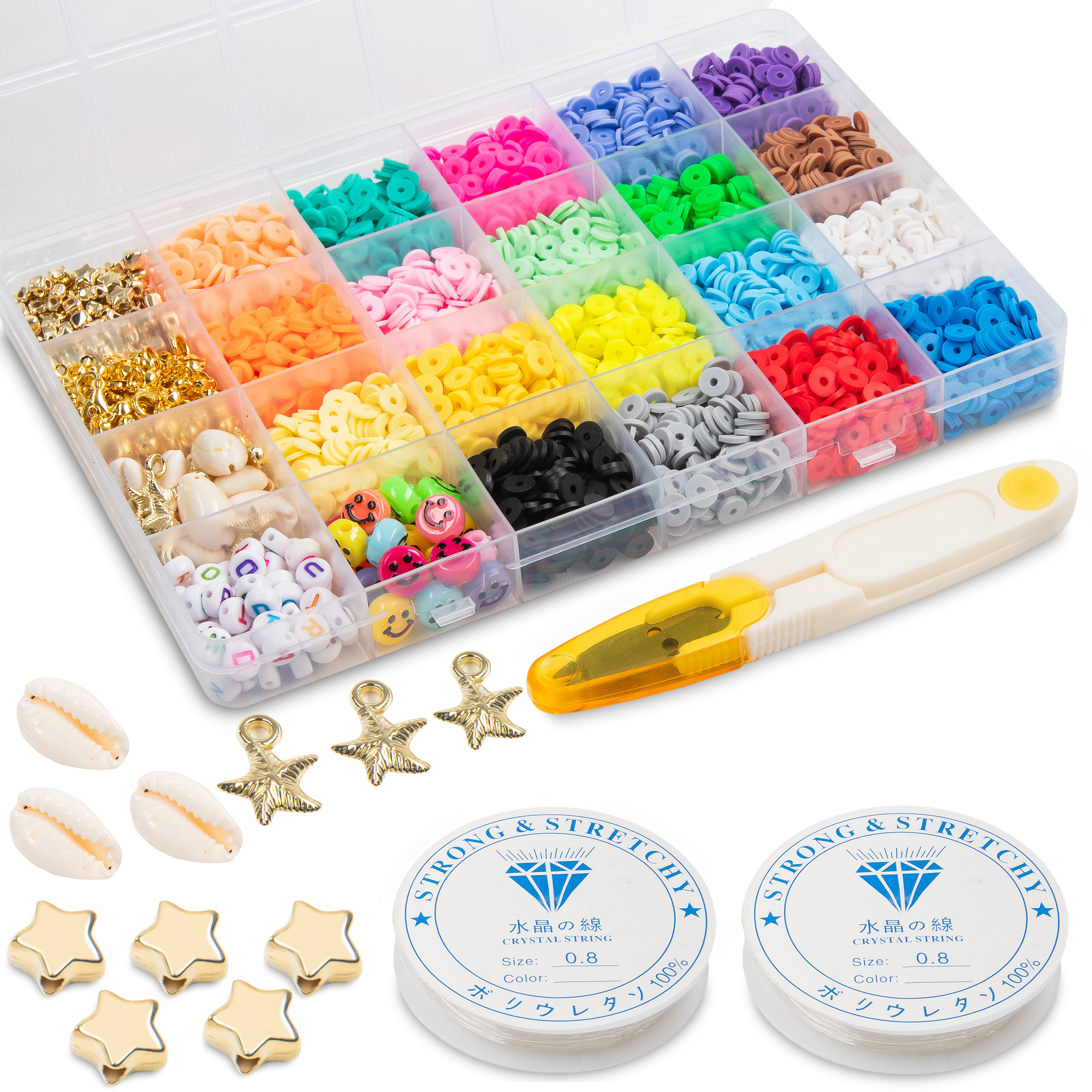 Sada se skládá z plochých korálků z polymerové hmoty a dalších doplňků a nástrojů. Obsahuje vše potřebné k tomu, abyste mohli ihned po jeho otevření začít vytvářet úchvatné šperky.