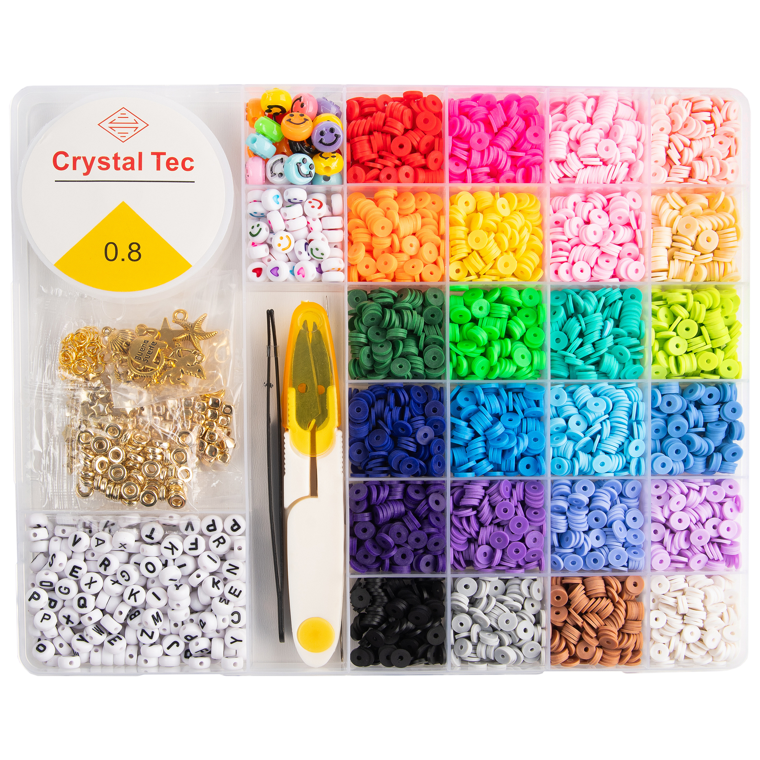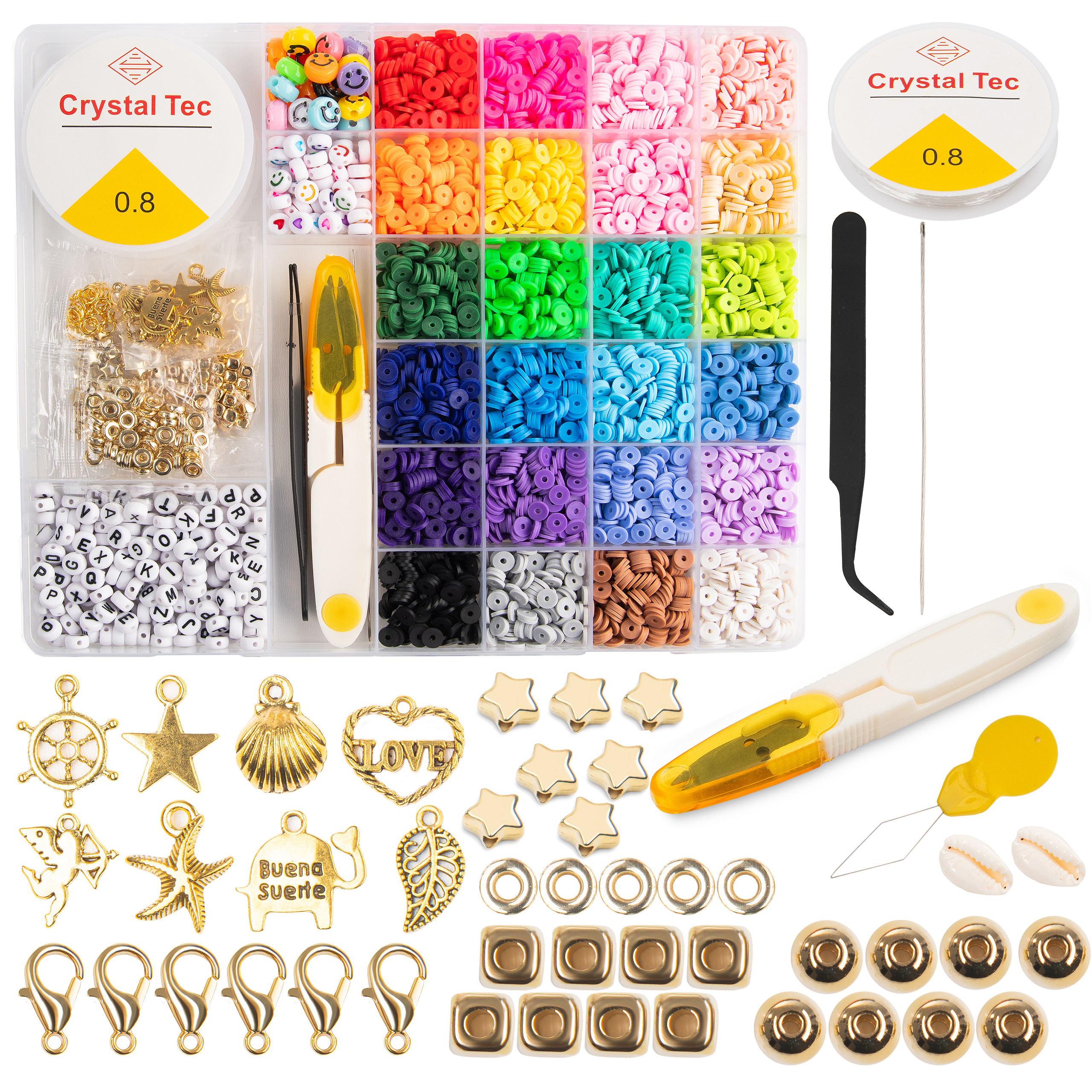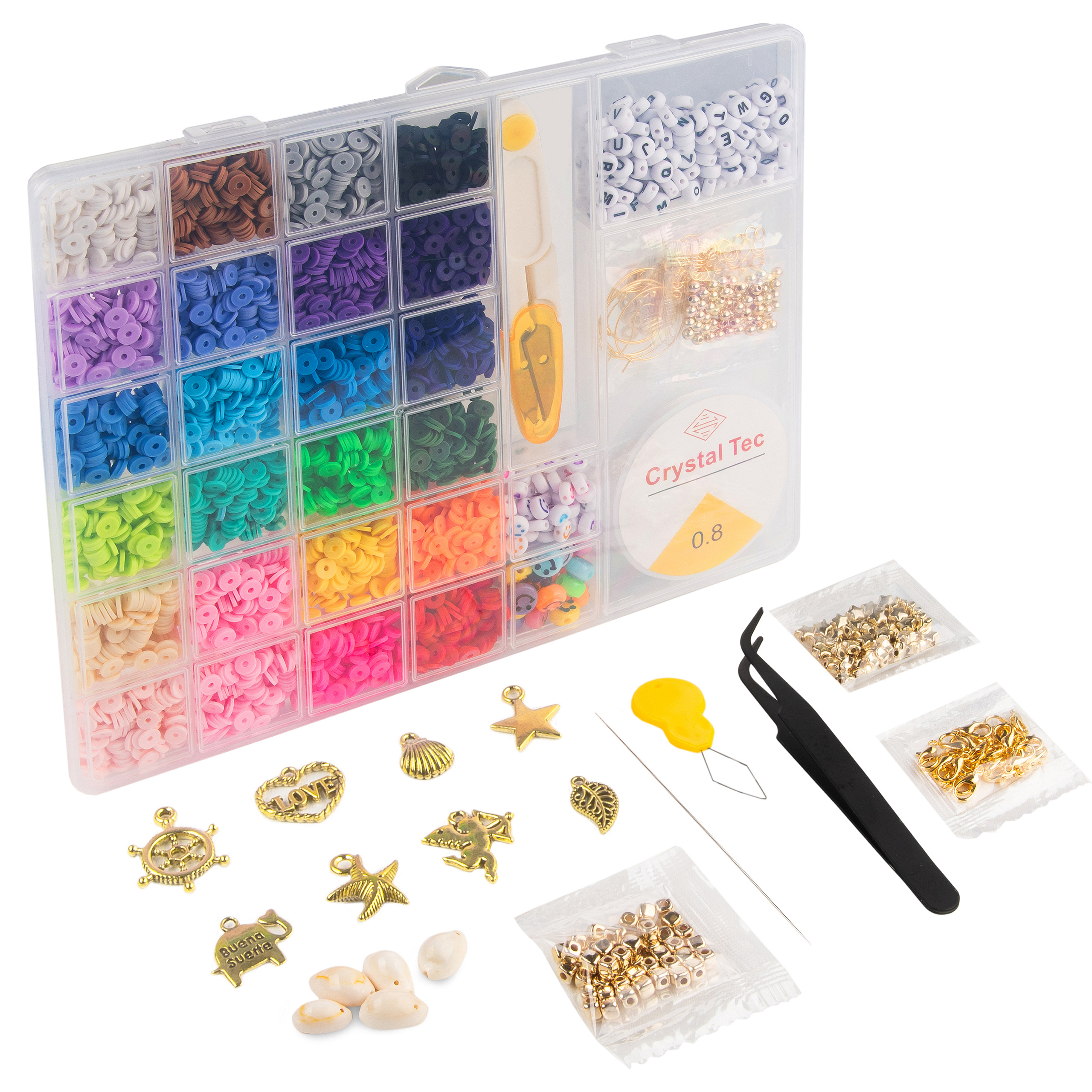 ✨Sada se skládá z plochých korálků z polymerové hmoty a dalších doplňků a nástrojů. Obsahuje vše potřebné k tomu, abyste mohli ihned po jeho otevření začít vytvářet úchvatné šperky.