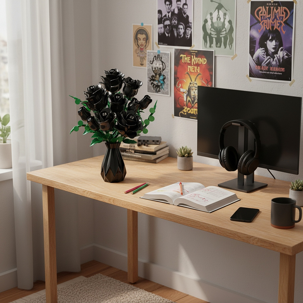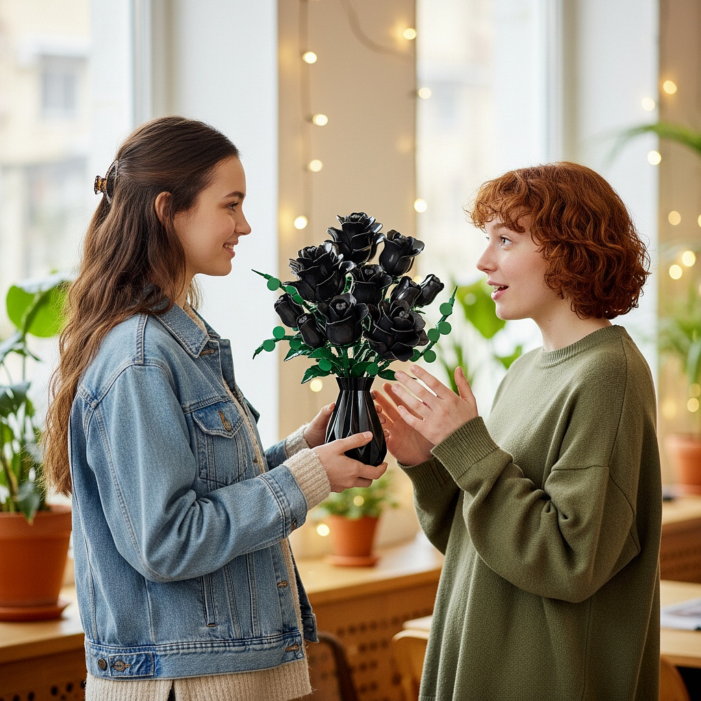 ✨Zestaw klocków marki Lebula pozwala stworzyć wyjątkowy bukiet czarnych róż .