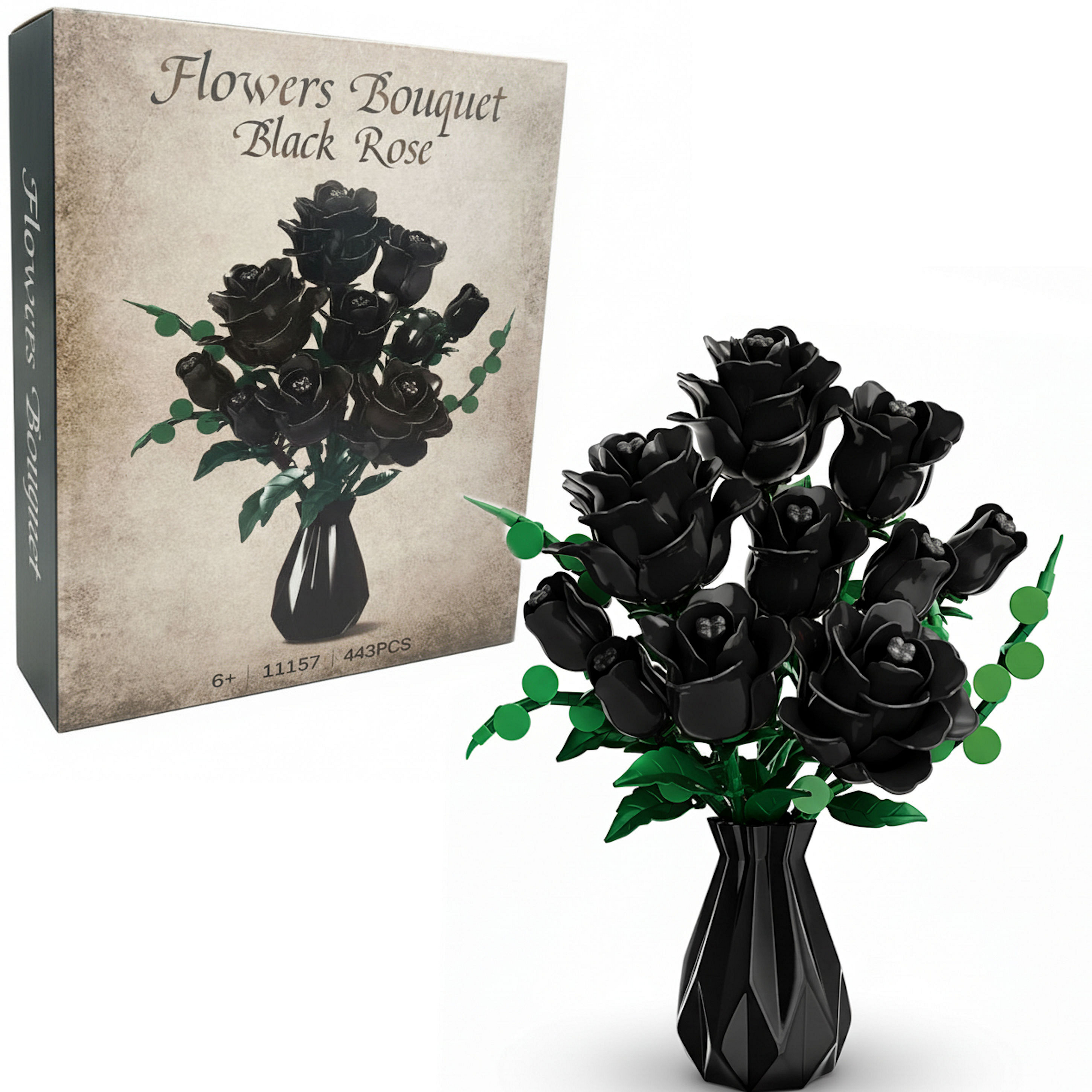 KLOCKI KONSTRUKCYJNE ZESTAW 443 EL. ELEMENTY CZARNE RÓŻE BUKIET Lebula Materiał plastik