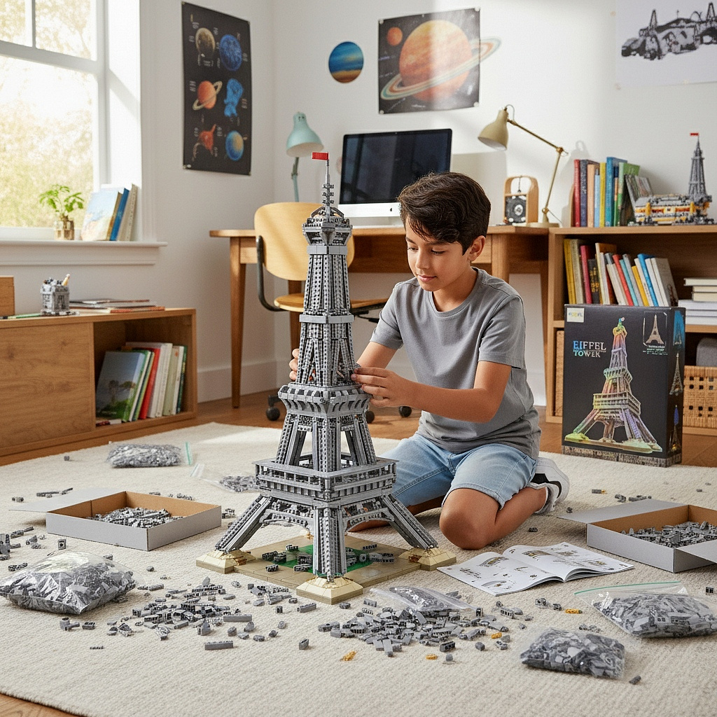Zbuduj jeden z najbardziej znanych symboli świata - Wieżę Eiffla - klocek po klocku! Ten imponujący zestaw marki Lebula zawiera aż 3097 precyzyjnych elementów, które pozwolą Ci odtworzyć w szczegółach architektoniczny arcydzieło Paryża w skali idealnej do ekspozycji.
