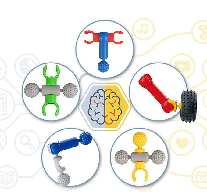 Série „Chytré Kostky” jsou výjimečné stavebnicové sady, které spojují zábavu s učením. Díky rozmanitosti prvků mohou být využívány mnoha způsoby: ke konstrukci vozidel, staveb a jiných forem pro třídění podle barvy nebo tvarů jako pomoc při učení barev - sada obsahuje prvky v mnoha barvách pro učení tvarů geometrických jako žetony v prvních matematických krocích Hračka, která roste spolu s dítětem - povzbuzuje k objevování, stavění a přemýšlení!