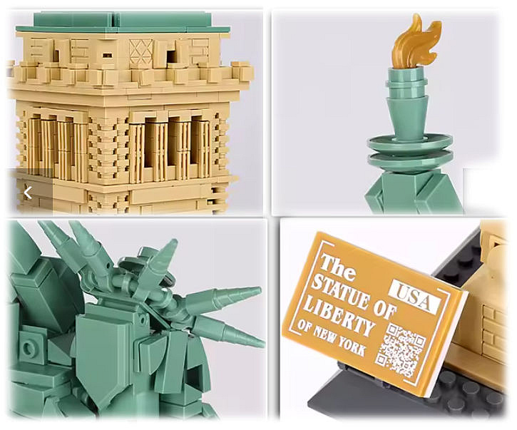 Zveme vás do New Yorku - na malý ostrov v přístavu, kde na vás čeká jedna z nejznámějších soch světa: Socha Svobody! Tato impozantní sada obsahuje 1409 vysoce kvalitních kostek, které umožní vašemu dítěti znovu vytvořit každý detail ikonické postavy - od hořící pochodně a koruny se 7 paprsky, přes desku s „JULY IV MDCCLXXVI“, po neoklasicistní tógu a mohutný sokl. To není jen model - to symbol naděje, odvahy a svobody… postavený vlastníma rukama!