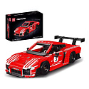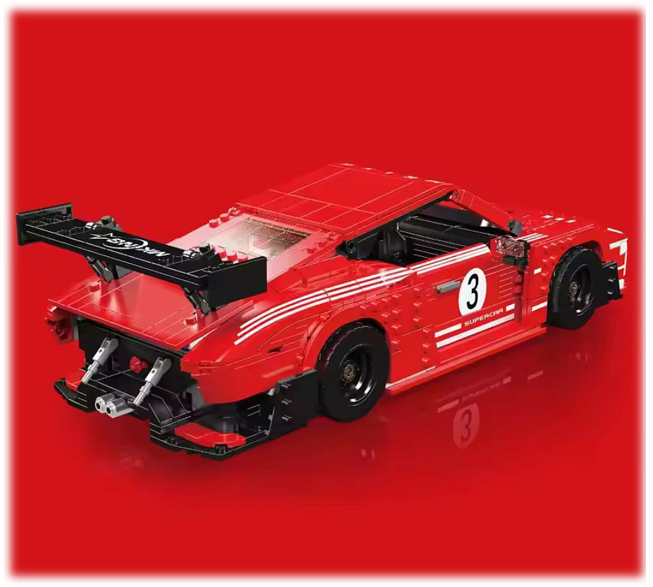 Červené panely karoserie kontrastující s klasickými bílými závodními pruhy