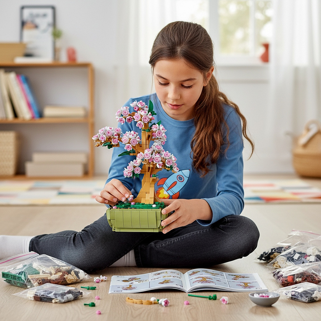 Zainspiruj dziecko pięknem natury i wiosennym urokiem kwitnącego drzewa wiśni - zbudowanego własnymi rękami! Ten wyjątkowy zestaw klocków to nie tylko zabawka, ale żywa, trójwymiarowa rzeźba, którą dziecko tworzy krok po kroku: od donicy, przez pnącą się łodygę, aż po setki delikatnych, różowych kwiatów wiśni.