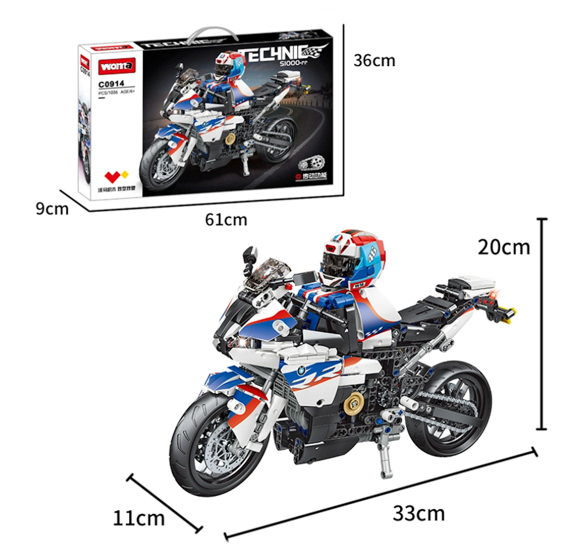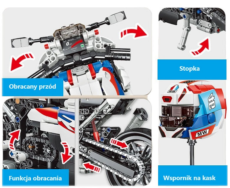 Stavebnice Motocykl - sada na stavění, obsahuje až 1036 dílků, kompatibilních kostek, vysoké kvality. Sada bude skvělou výzvou pro milovníky stavebnicových kostek.Prvky vyrobené z vysoce kvalitních materiálů