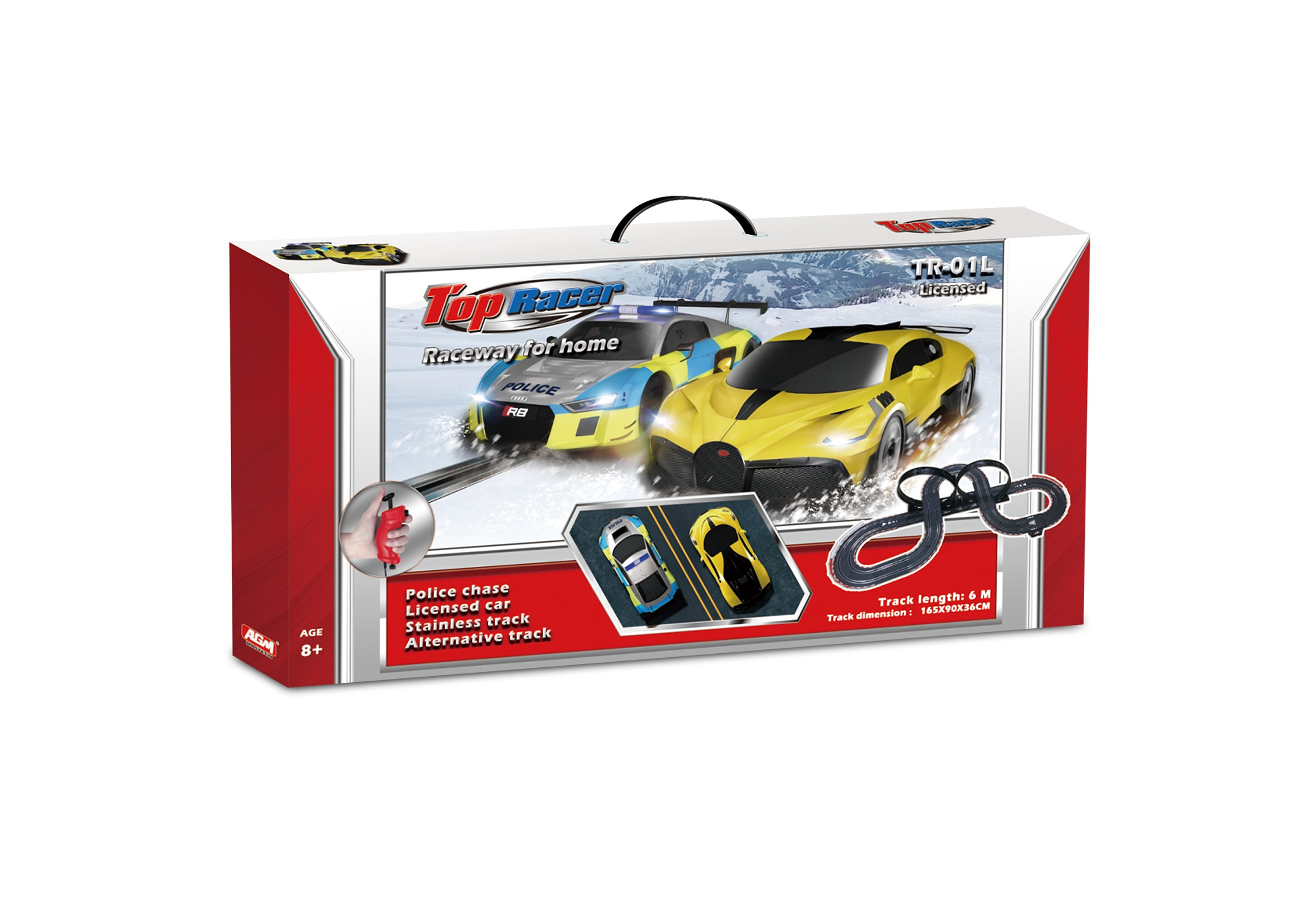 Tor wyścigowy ma długość 6 metrów i jest bardzo łatwy do złożenia i demontażu, co zawdzięcza unikalnemu systemowi zatrzasków łączących.