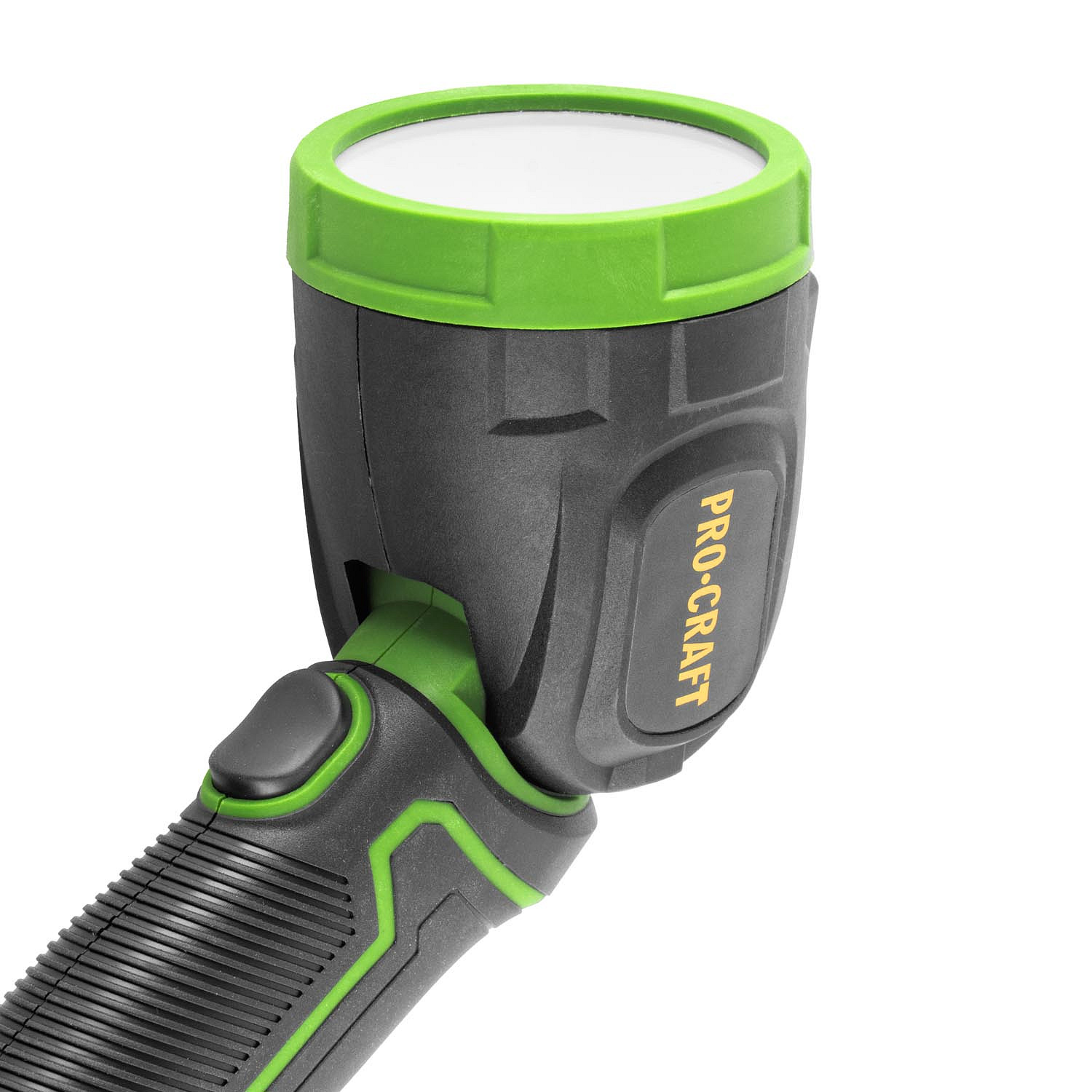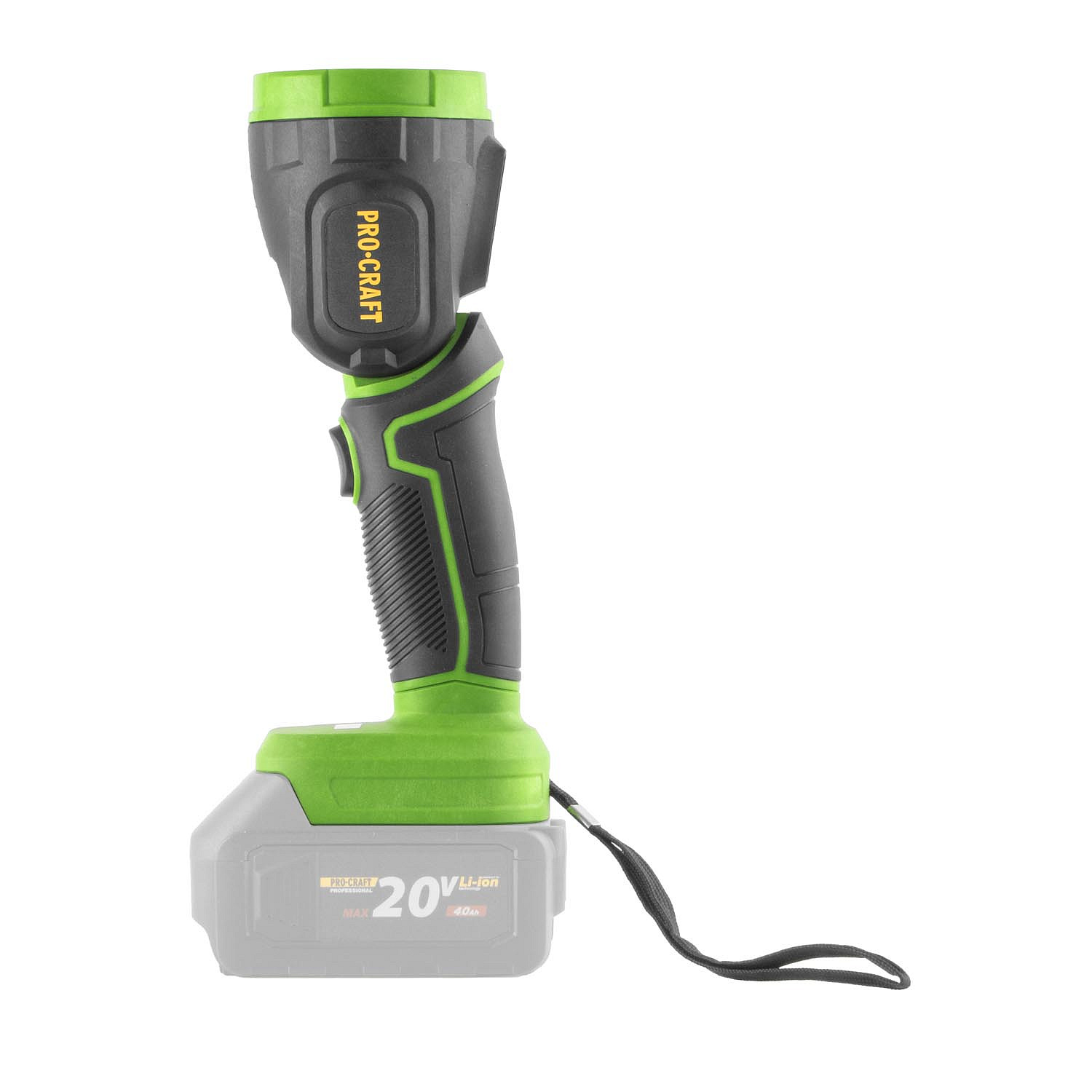 Kompaktní LED reflektor Procraft LL18bb s výkonem 3W a světelným tokem 300lm. Nastavitelný úhel (0–90°), lehká konstrukce (0,25kg). Kompatibilní s bateriemi Procraft 20V (bez baterie a nabíječky).