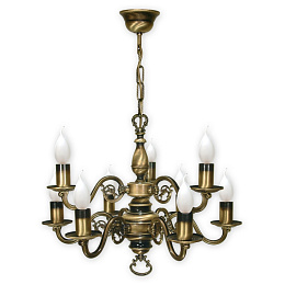 Lemir Závěsné svítidlo na řetězu 387/W9 Svícen lustr 9 ramenný, patina