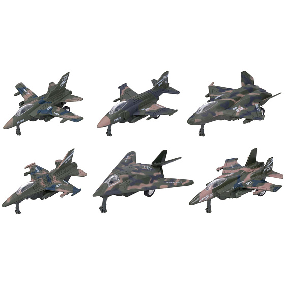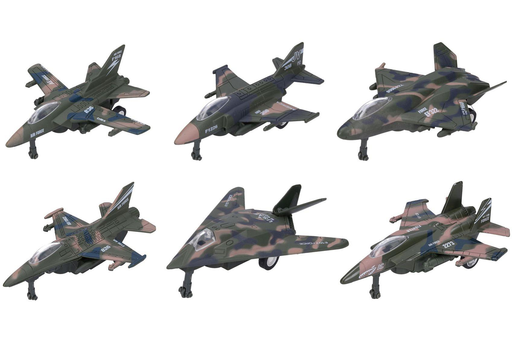 Letadlo/stíhačka kov/plast 12cm na zpětné natažení mix druhů 6ks v boxu