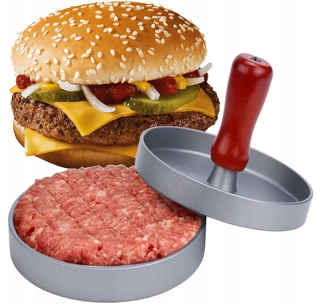 tvaru, velikosti a hmotnosti. Určeno pro všechny druhy mletého masa. Má nepřilnavou vrstvu. Díky grilovacímu potahu se maso lépe opeče na pánvi. Nezbytné při výrobě hovězího, krůtího, klobásového, veganského, vegetariánského a mnoha dalších odrůd.