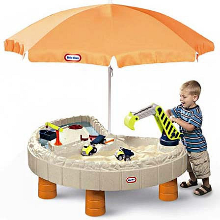 Pískoviště Stavební místo s deštníkem navrženo uznávaným výrobcem hraček Little Tikes.Každé dítě může mít nyní své vlastní, fantastické staveniště. Tento výjimečný stůl umožňuje hrát si s pískem a vodou. Pískoviště umožní malým stavitelům aktivně a příjemně trávit čas na čerstvém vzduchu.