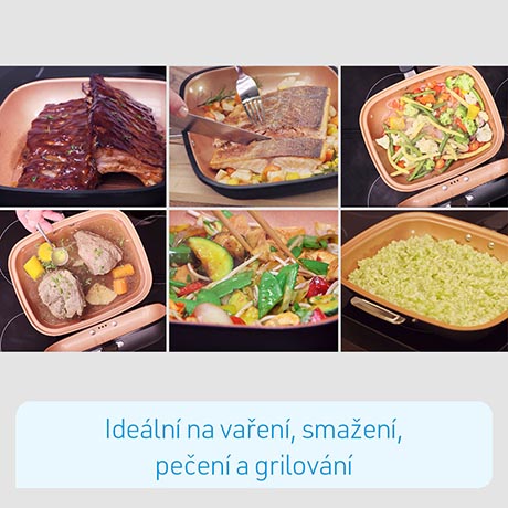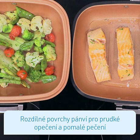 Čtverečný tvar Vám zajistí dostatek místa při vaření a umožní Vám přípravu dvou pokrmů najednou. Livington Black Doubletta má extrémně odolné dno, které ukládá teplo na obou stranách, pro ještě lepší výsledky. Díky propracované cirkulaci se teplo uvnitř pánve rozloží kolem Vašeho jídla rovnoměrně, například při šetrném, pomalém dušení, či vaření v páře, nebo také při grilování.