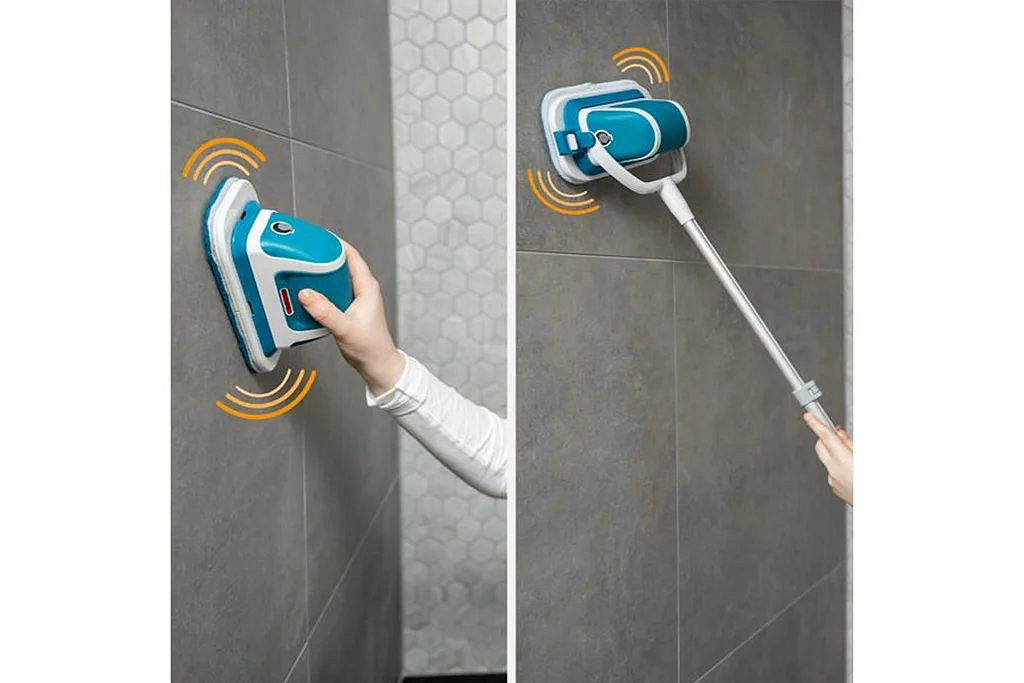 Systém 2 v 1 EasySwitch vám usnadní práci: můžete jej používat ručně nebo pomocí teleskopické tyče! S prodlužovací rukojetí s ním můžete vyčistit sprchový kout nebo dokonce podlahu is malým množstvím čistícího prostředku.