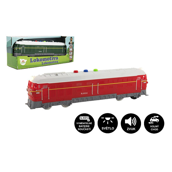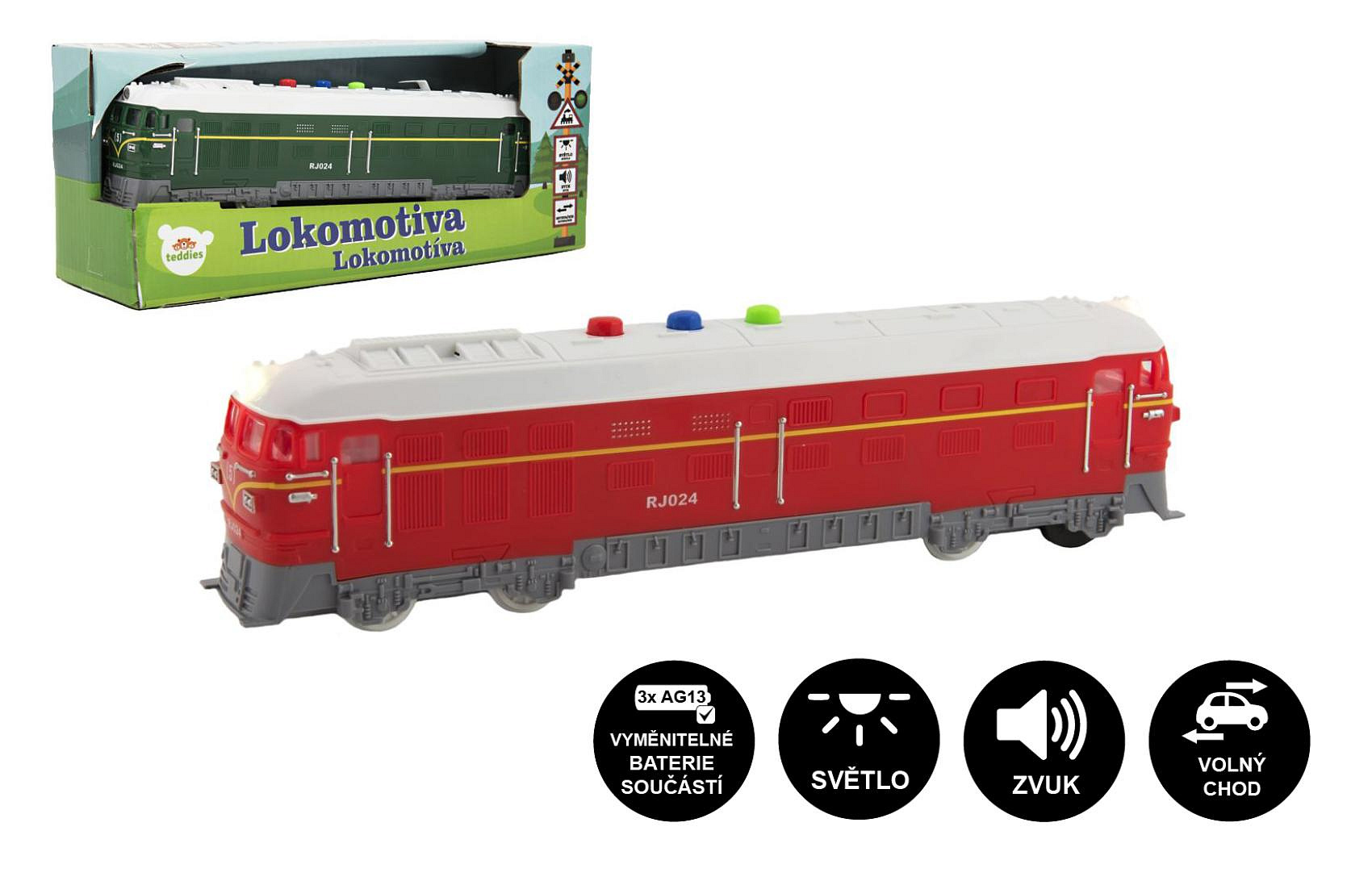 Lokomotiva/Vlak plast 23cm na baterie se zvukem se světlem 2 barvy v krabičce 27x11x8cm