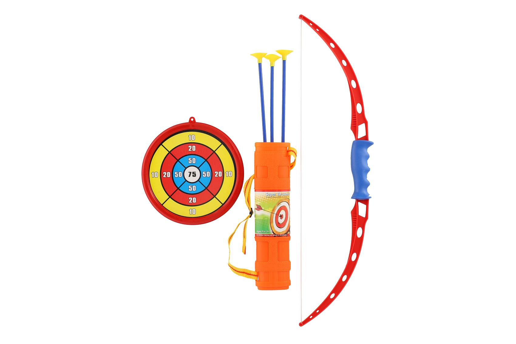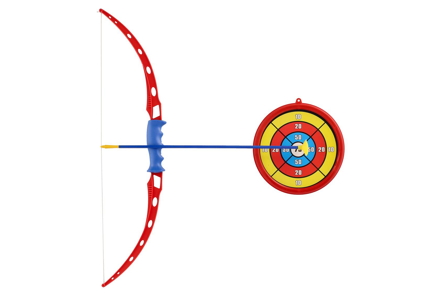 Plastový set s lukem, šípy a terčem určený pro malé střelce, kteří střílí se šípy zakončenými přísavkou na připravený terč. Střelba je tak pro děti bezpečná. Po ukončení střílení lze šípy složit do toulce, který má nastavitelný popruh pro snadné přenášení. Vhodné od 3 let.