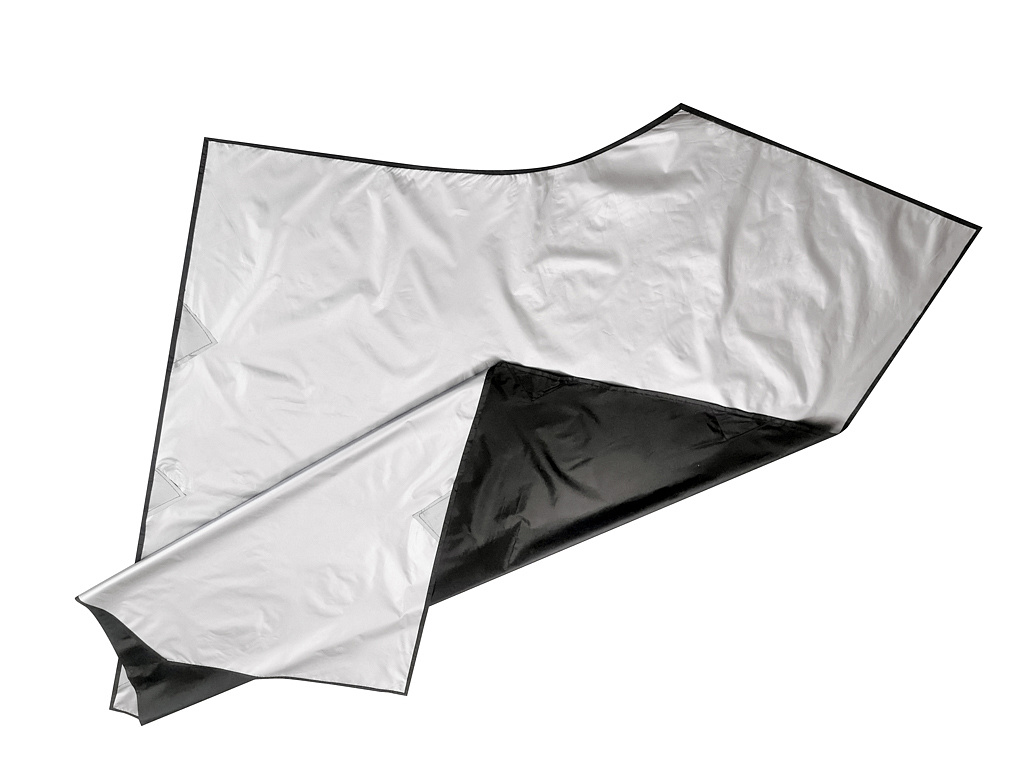 W całości została wykonana z grubego, nieprzepuszczającego światła poliestru. Z jednej strony posiada srebrną warstwę termoizolacyjną.
