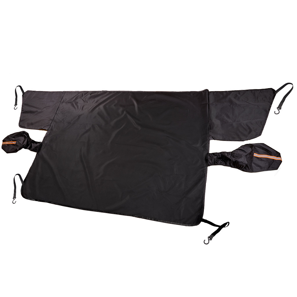 Kryt má 6 všitých magnetů, které ji pevně drží na místě. Háčky na uchycení k ráfkům navíc zajišťují, že se podložka nesklouzne ani při silném větru. Mata také chrání části bočních oken a zrcátek.