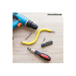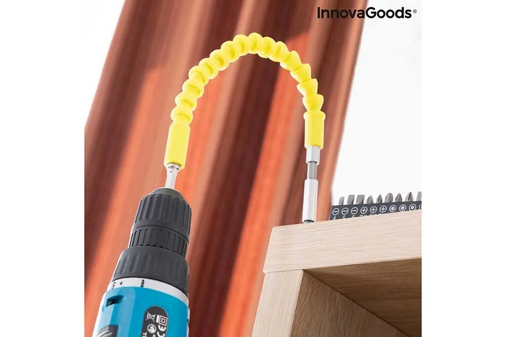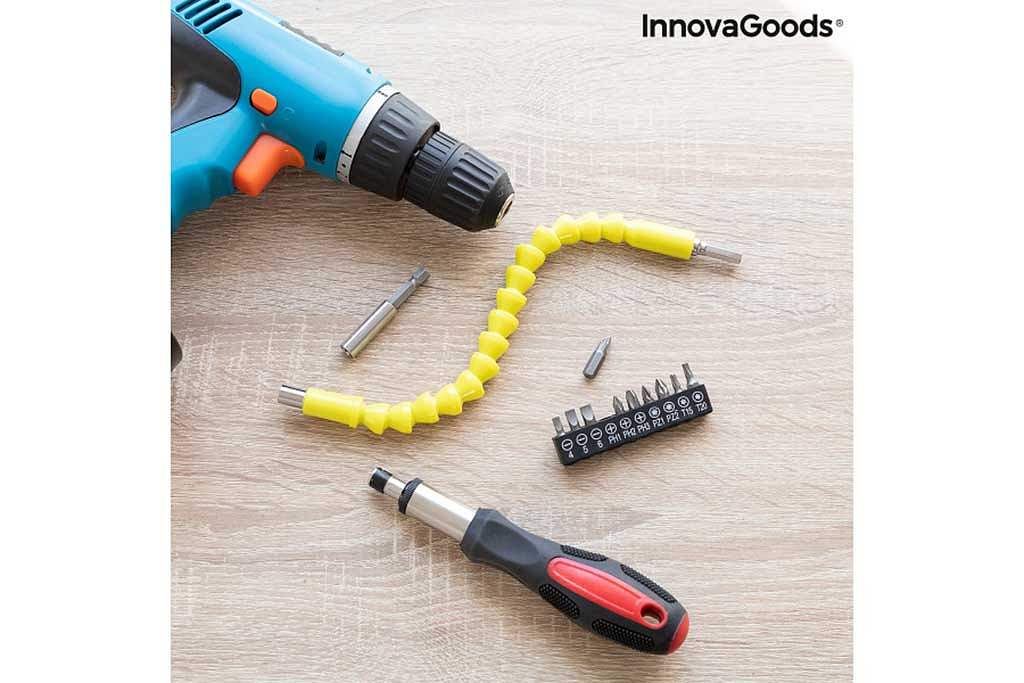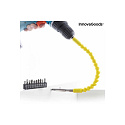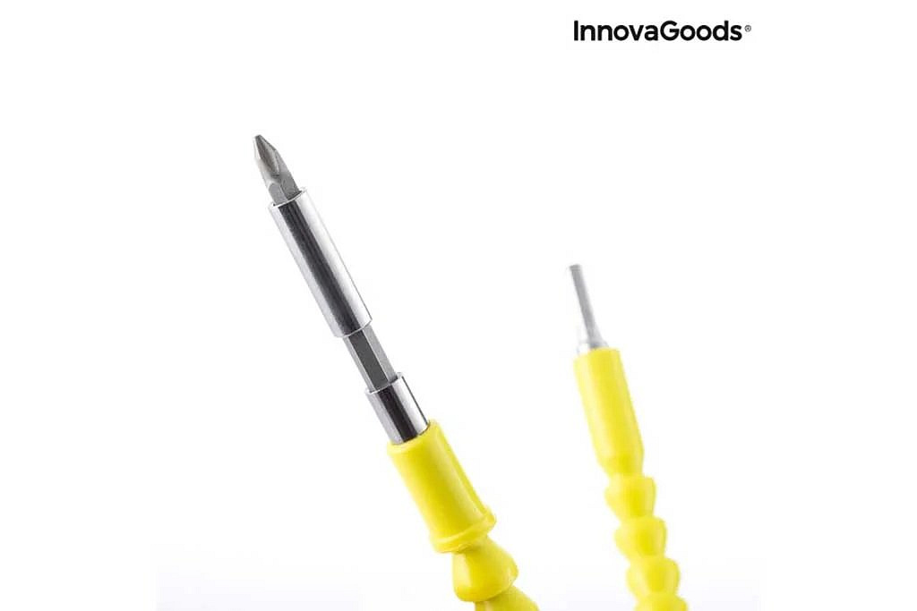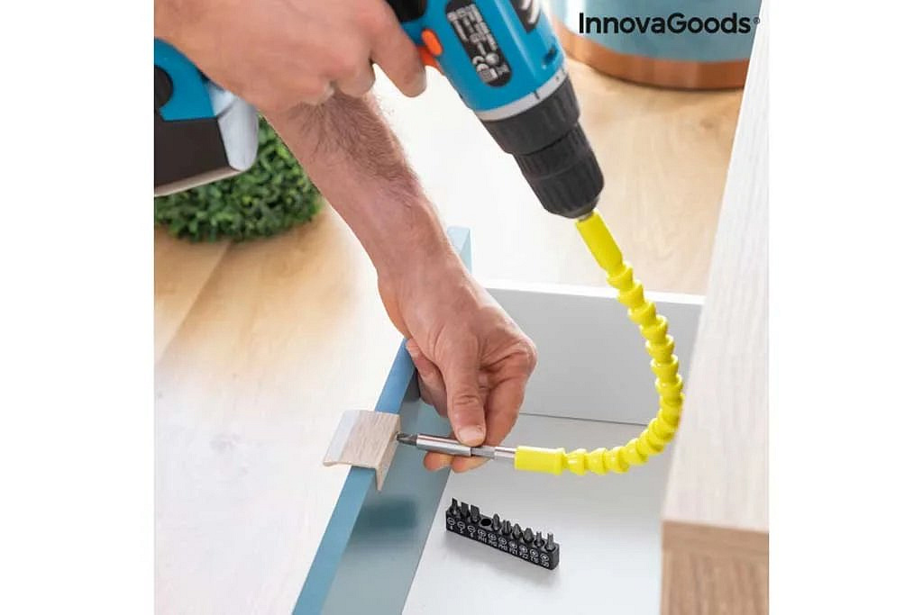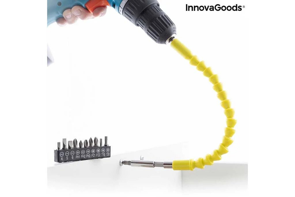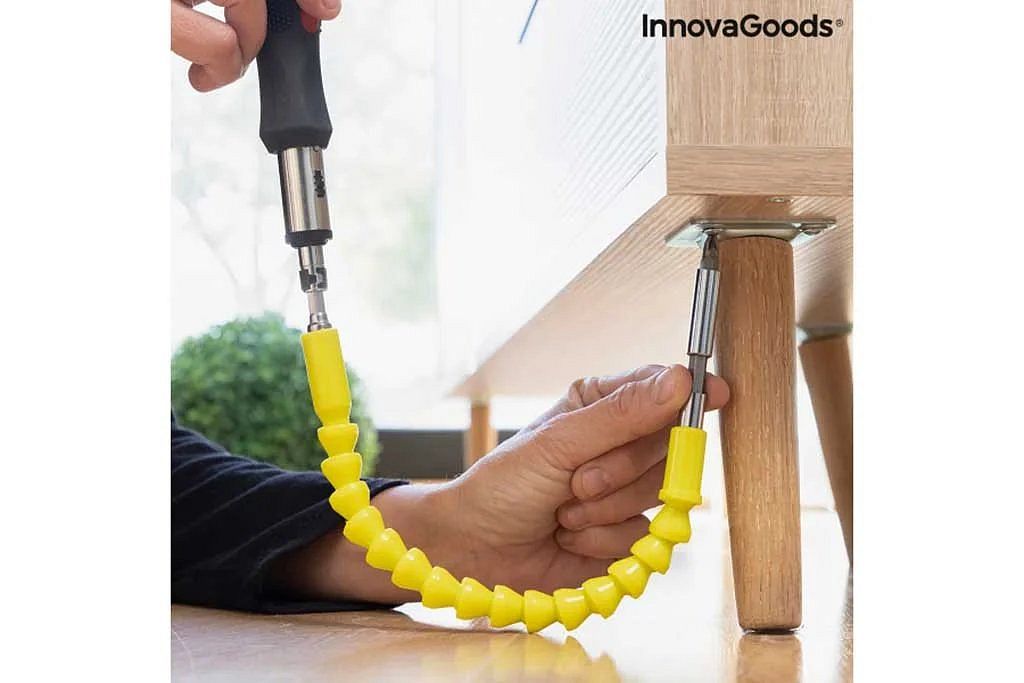 Ohebný magnetický nástavec na šroubovák s otáčením o 360º Umožňuje šroubování nebo odšroubování na těžko přístupných místech nebo v malých a omezených prostorách, což umožňuje pohodlnější polohy při práci. Lze jej používat s elektrickým nebo ručním nářadím (šroubovák, vrtačka ...). Navíc obsahuje několik doplňků, které usnadní a zkompletují kutilskou práci. Držák hrotů je ideální na uložení a uspořádání 10 přiložených hrotů (3 ploché hroty typu 4-5-6, 3 hroty typu PH1-PH2-PH3, 2 hroty typu PZ1-PZ2 a 2 hroty typu T15-T20). Univerzální adaptér hrotů je také magnetický pro snadné uchycení a pevné držení. Díky lehkému, ohebnému, magnetickému a přenosnému designu se tento nástavec s příslušenstvím snadno používá, skladuje a přepravuje.Více