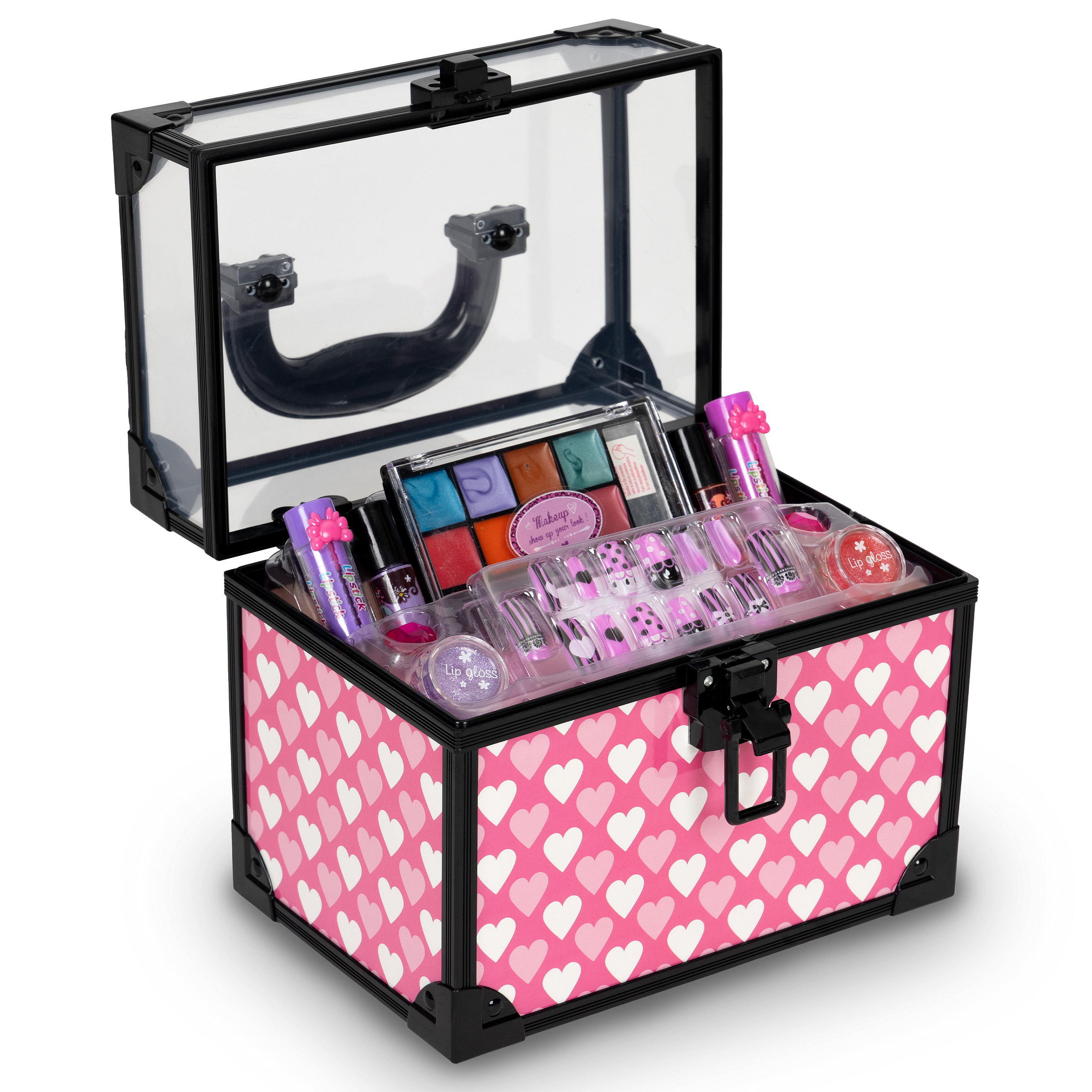 We present a case full of washable cosmetics – the perfect gift for every little princess who's curious about mom’s beauty products. A case full of makeup, lip glosses, eyeshadows, lipsticks, and pretend nail tips guarantees endless fun in home spa play.