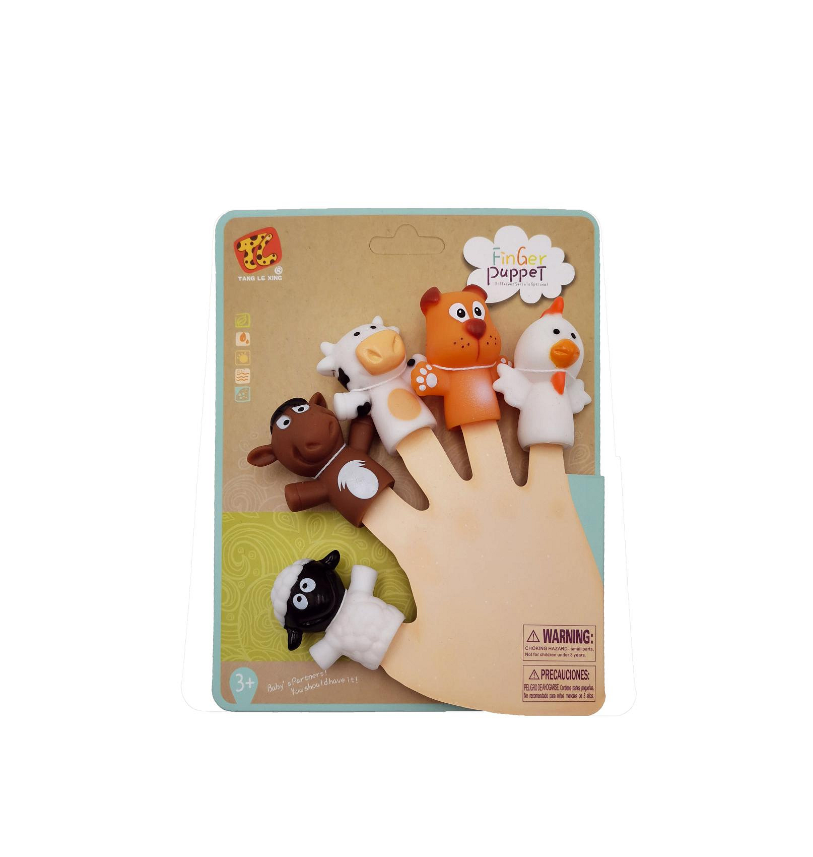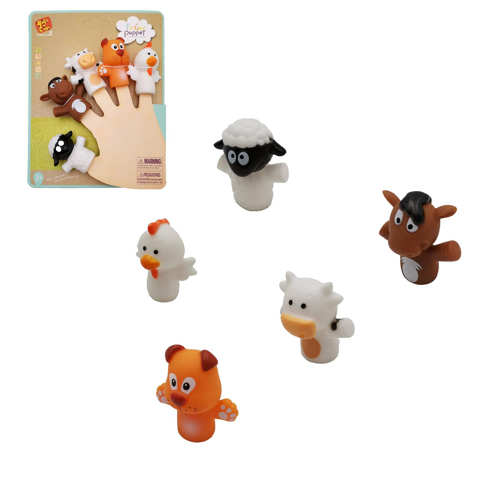 Maňásek prstový zvířátko domácí farma guma 5cm na kartě 16x20,5cm