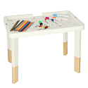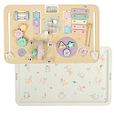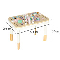 Stolik edukacyjny daje wsparcie w rozwoju dziecka dzięki edukacyjnym elementom, które gwarantują rozwój zdolności manualnych i sensorycznych. Dzieci wspierają rozwój poprzez dotyk, słuch i obserwację, a drewniany design zapewnia bezpieczną eksplorację.