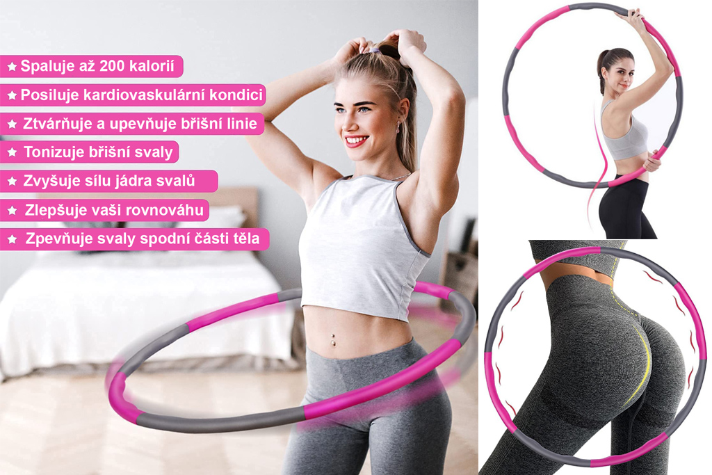 Fitness obruč Hula Hoop Obruč Hula Hoop a krouživé pohyby s ní zapojí a rozpohybují svalstvo celého těla, díky čemuž dochází k efektivnímu spalování kalorií a formování postavy zábavnou formou. Pravidelné cvičení s obručí posiluje oblast beder a křížovou oblast, rovněž pozitivně ovlivňuje správnou funkci páteře. Hula Hoop obruč je snadno přenosná a skladná díky skládací konstrukci. Oblíbená fitness pomůcka, kterou si můžete vzít s sebou a cvičit téměř kdekoliv. Hula Hoop fitness obruč je složena z 8 dílů z plastového materiálu, který je potažen jemnou pěnou pro zvýšení komfortu při cvičení. Hlavní přednosti této Hula Hoop obruče: Spaluje až 200 kalorií Posiluje kardiovaskulární kondici Zvyšuje sílu jádra svalů Ztvárňuje a upevňuje vaše břišní linie Tonizuje břišní svaly Zlepšuje vaši rovnováhu Zpevňuje svaly spodní části tělaVíce