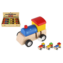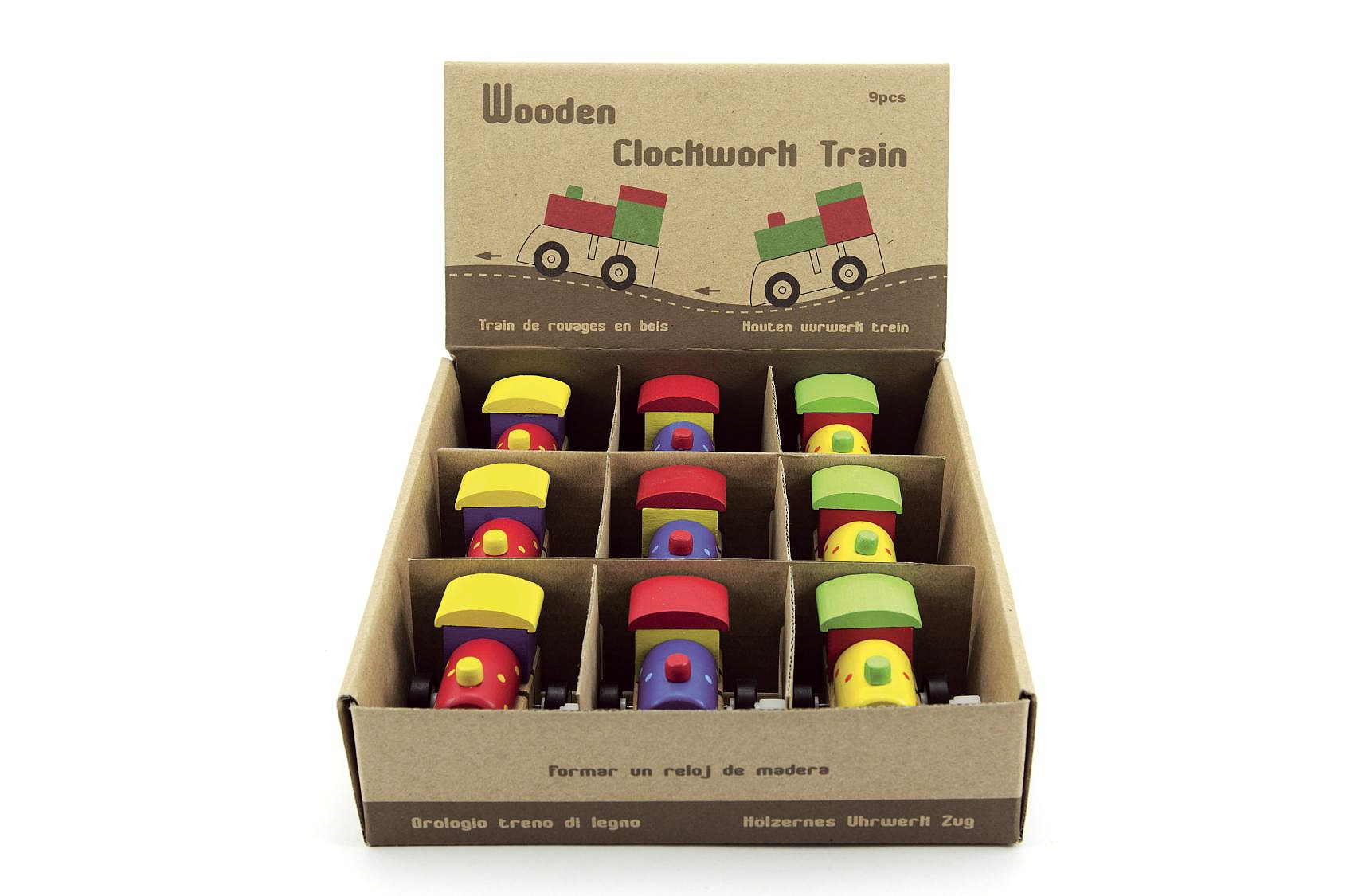 Roztomilá dřevěná mašinka o velikosti cca 7 cm je krásný dárek pro všechny, kteří mají rádi vláčky. Mašinka má pohon na klíček. Vhodné od 3 let.