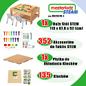 Stolik Edukacyjny STEM Masterkidz + Akcesoria pozwalają na kreatywną zabawę oraz poznawania świata nauki. Stół posiada panel z otworami, w które wkładając kolorowe i geometryczne kołeczki, śrubki, koła zębate można tworzyć przepiękne wzory. Dodatkowo w zestawie znajduję się płyta o wymiarach 39,7 x 39,7 cm, którą można ułożyć na stole oraz 135 klocków do układania na niej.