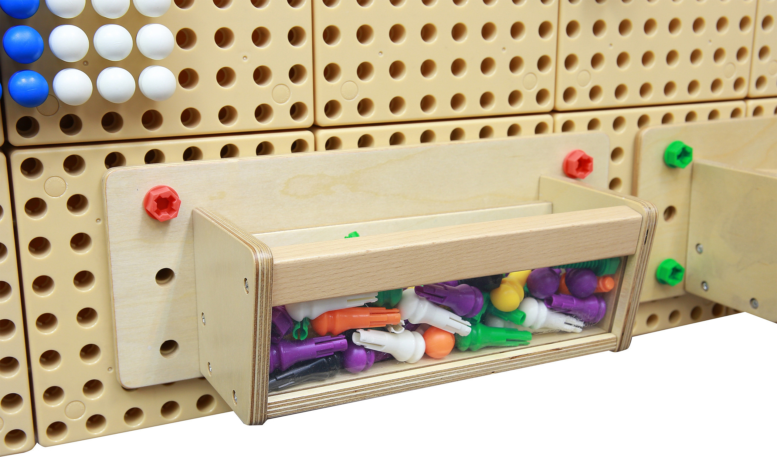VícePojemniczek, w którym można umieścić używane aktualnie dodatki do tablicy Masterkidz STEM, by były pod ręką podczas kreowania nowych obrazków. Można do niego włożyć dowolne kołeczki, śrubki, czy sznureczki Masterkidz, by nie musieć każdorazowo sięgać do regału z pojemnikami, w których są elementy.