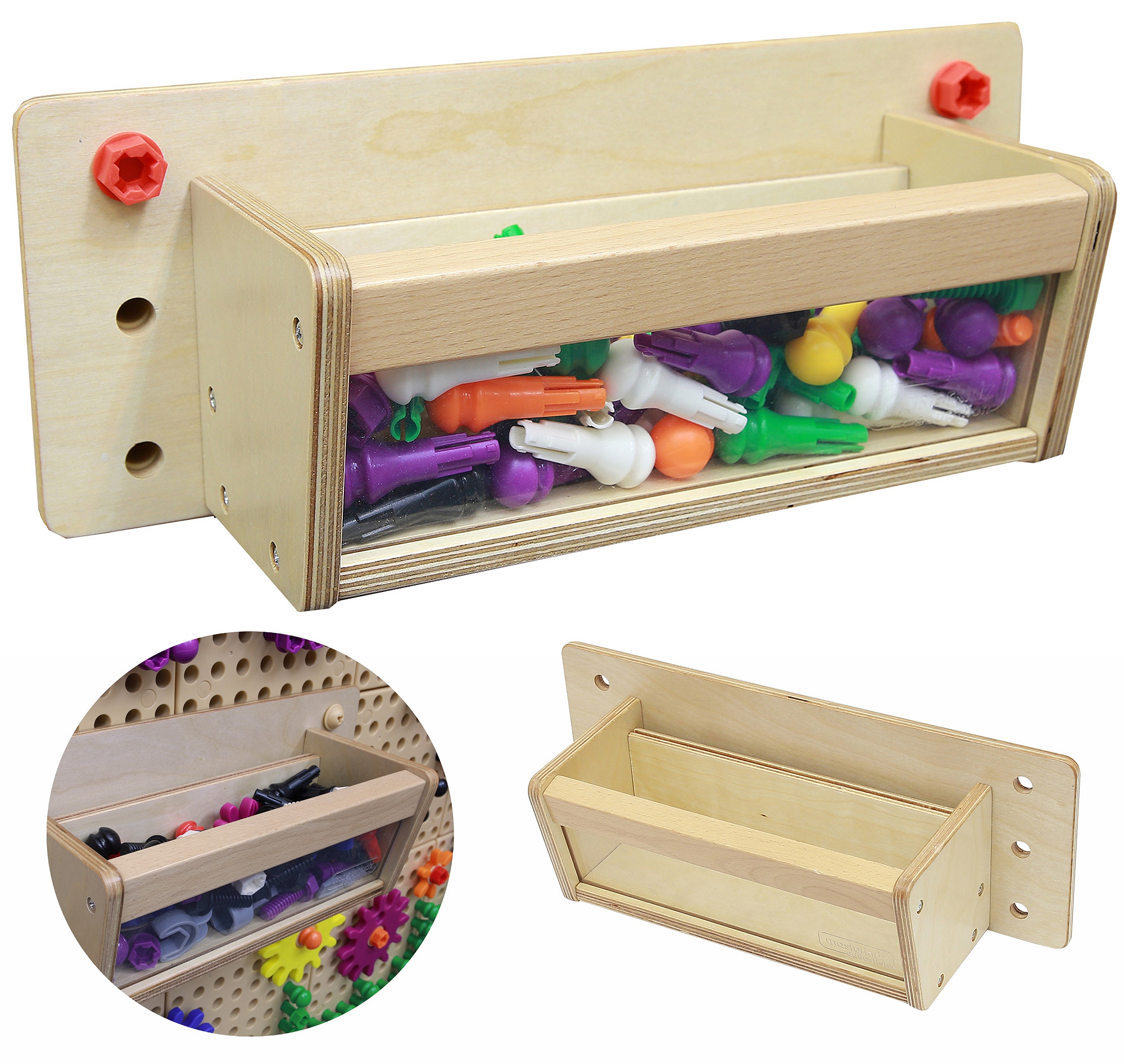 Pojemniczek, w którym można umieścić używane aktualnie dodatki do tablicy Masterkidz STEM, by były pod ręką podczas kreowania nowych obrazków. Można do niego włożyć dowolne kołeczki, śrubki, czy sznureczki Masterkidz, by nie musieć każdorazowo sięgać do regału z pojemnikami, w których są elementy.
