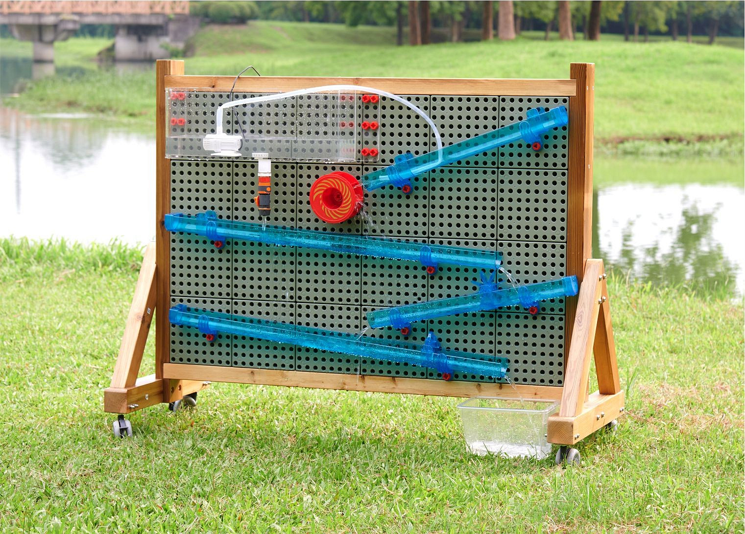Przezroczysty zbiornik na wodę wykonany z wysokiej jakości akrylu. Idealny dodatek do tworzenia różnorodnych torów wodnych, kompatybilny ze wszystkimi tablicami outdoorowymi STEM marki Masterkidz. Zbiornika można używać samodzielnie dzięki wbudowanemu odpływowi na wodę lub za pomocą pompy wodnej (brak w zestawie). Charakterystyka: Dla dzieci od 3 roku życia Wykonany z wysokiej jakości materiałów Niezastąpiona część każdego toru wodnego