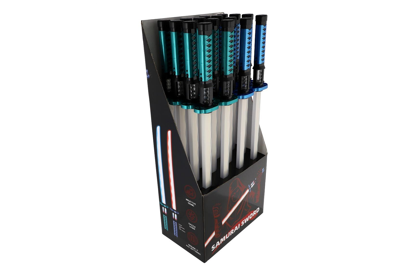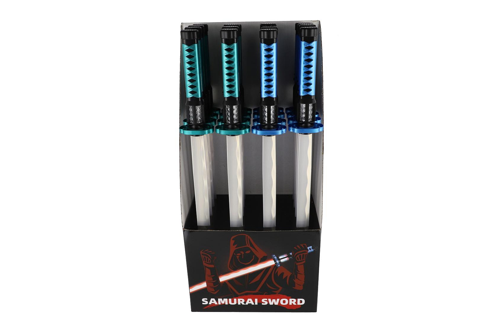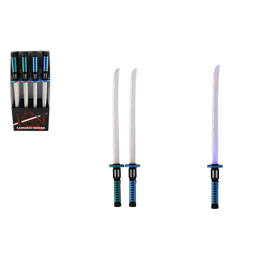 Popis Meč samurajský svítící plast 73cm na baterie se zvukem se světlem 2 barvy 16ks v boxu