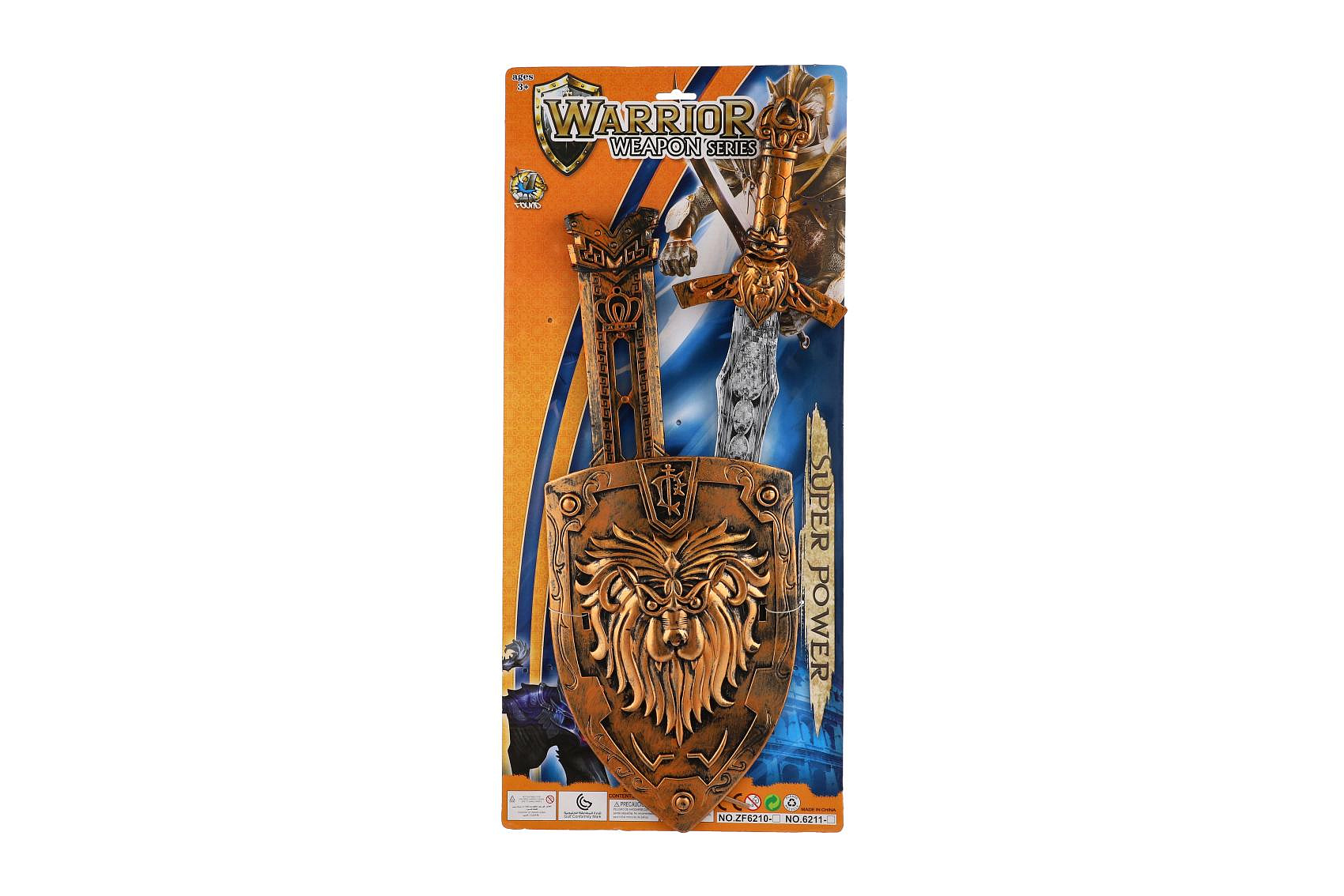 Popis Meč se štítem a pouzdrem plast 55cm na kartě 25x57cm