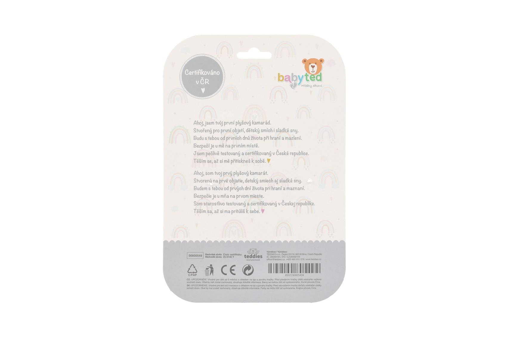 Medvídek babyted chrastítko plyš 30cm závěs na postýlku/kočárek na kartě v sáčku 0m+