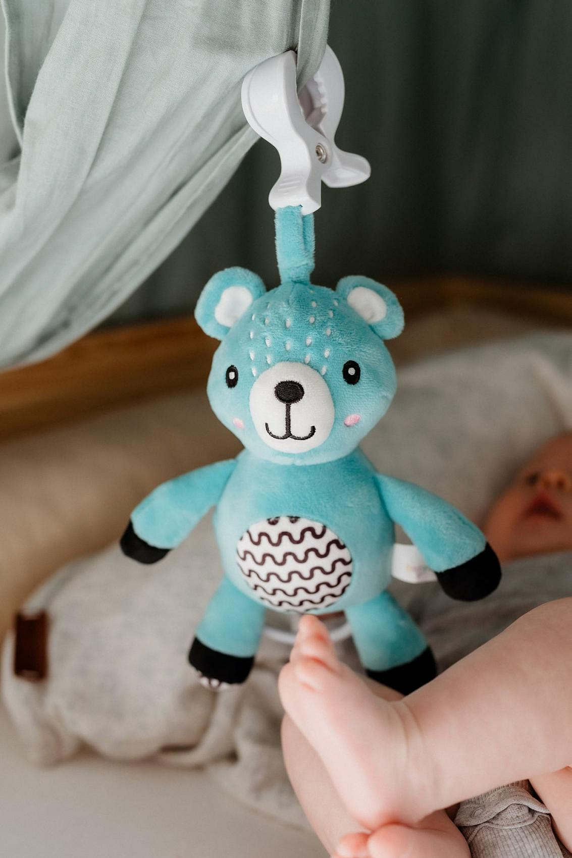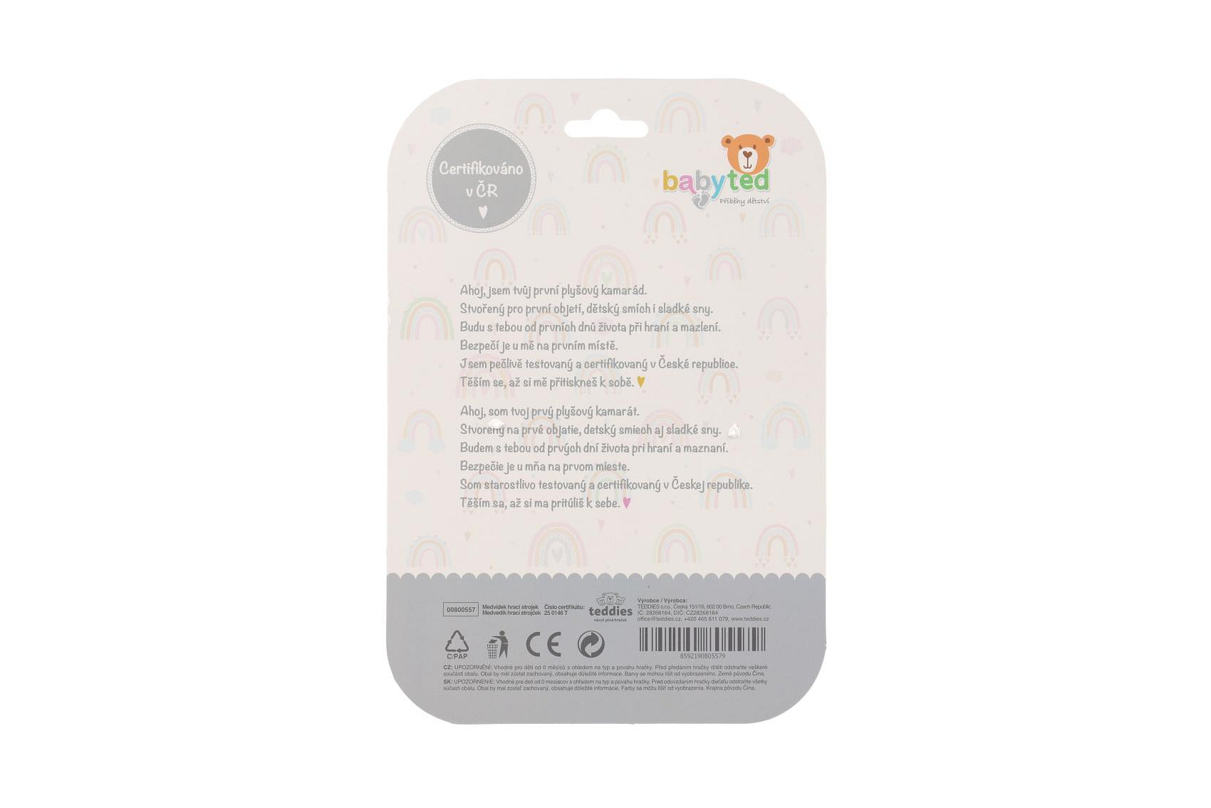 Medvídek babyted natahovací hrací strojek plyš 30cm závěs na postýlku/kočárek na kartě v sáčku 0m+