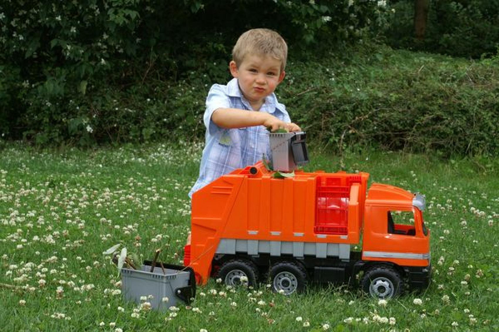 Plně multifunkční popelářské auto s odnímatelnou popelnicí a kontejnerem na kolečkách. Vyroben s kva