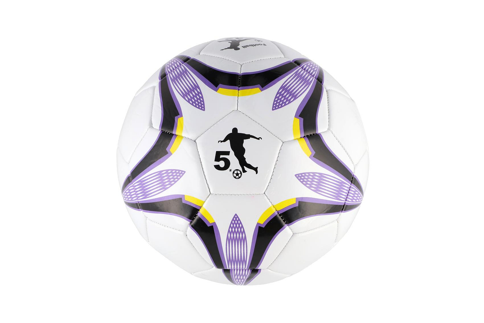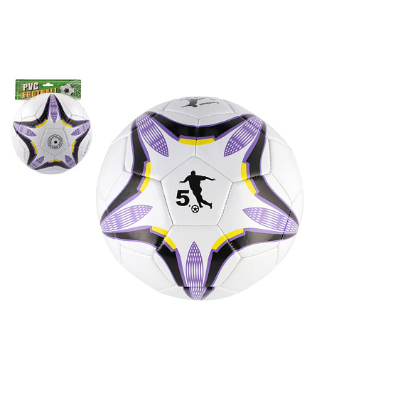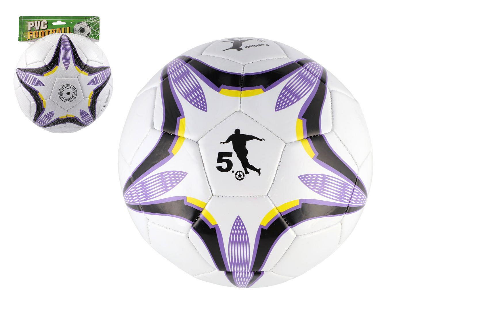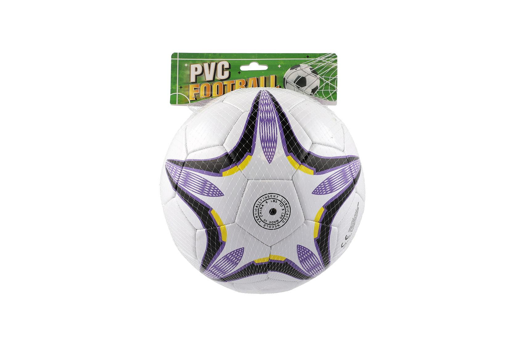 Míč fotbalový nafouknutý šitý 23cm fialovobílý v síťce