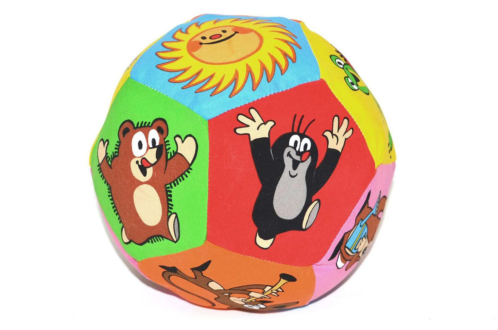 Textilní míč je opravdu báječný - po celé ploše jsou jednotlivě umístěny barevné obrázky s Krtečkem a jeho kamarády. Míček je určený už pro nejmenší miminka, které budou ze začátku potřebovat asistenci maminky, ale jak se naučí dítko sedět a pořádně mířit, to bude teprve zábava. Míček je v plastové taštičce. Rozměr míčku: 15 cm Vhodné od 0 měsíců