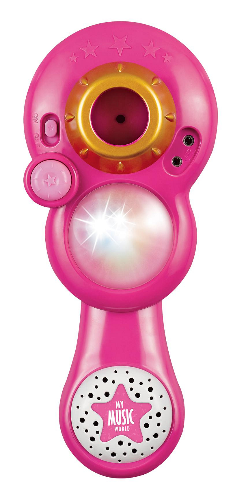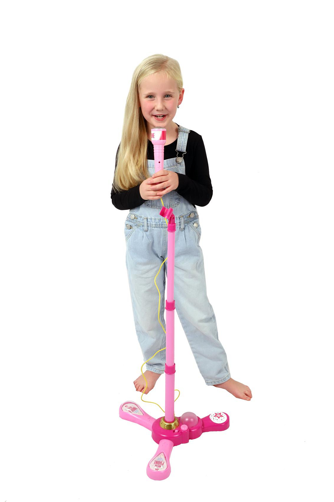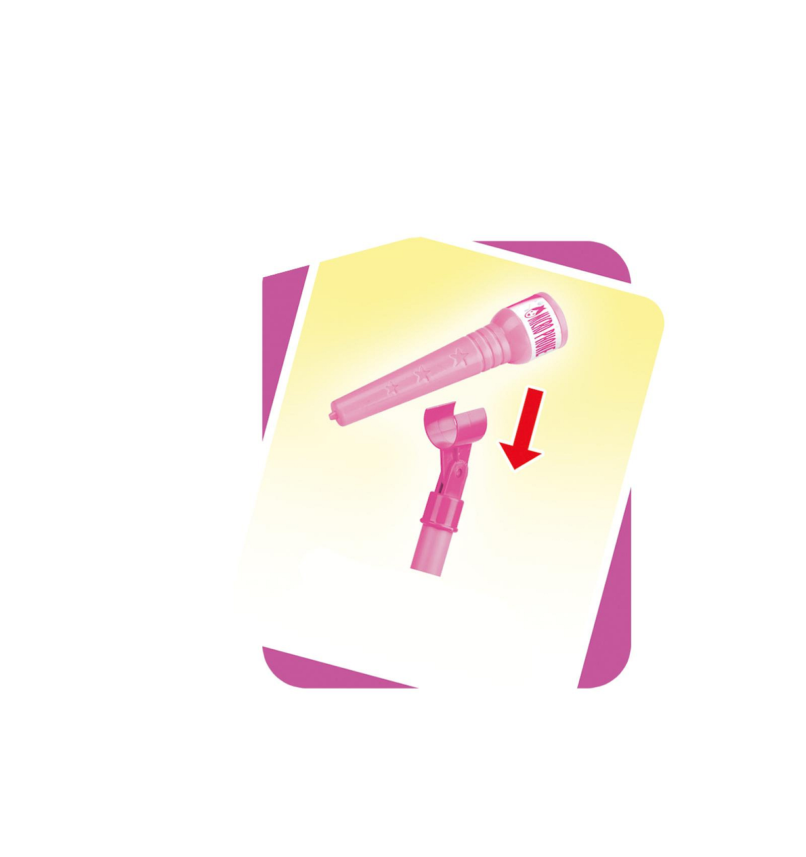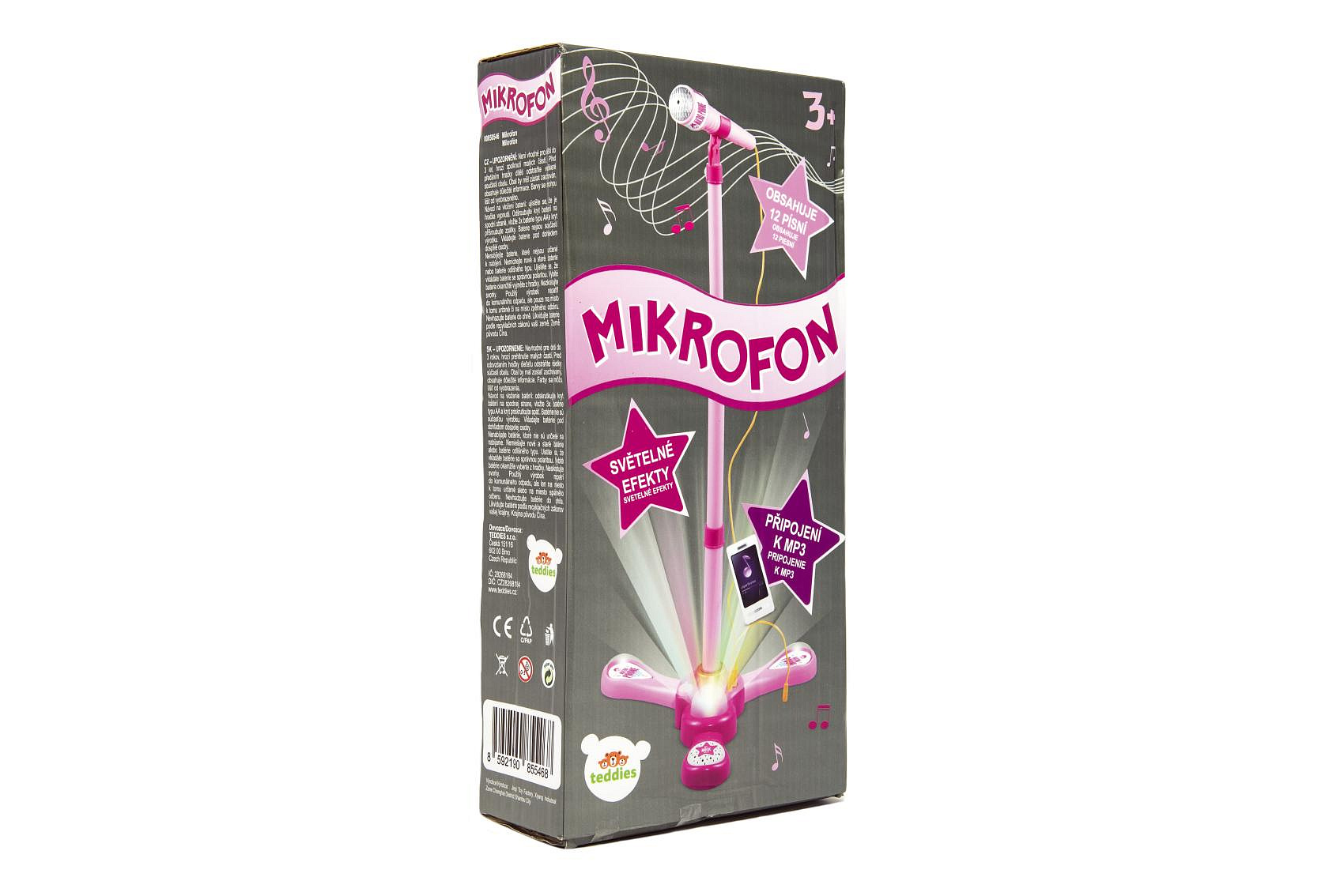 Mikrofon karaoke růžový plast na baterie se světlem se zvukem v krabici 17x34x7cm