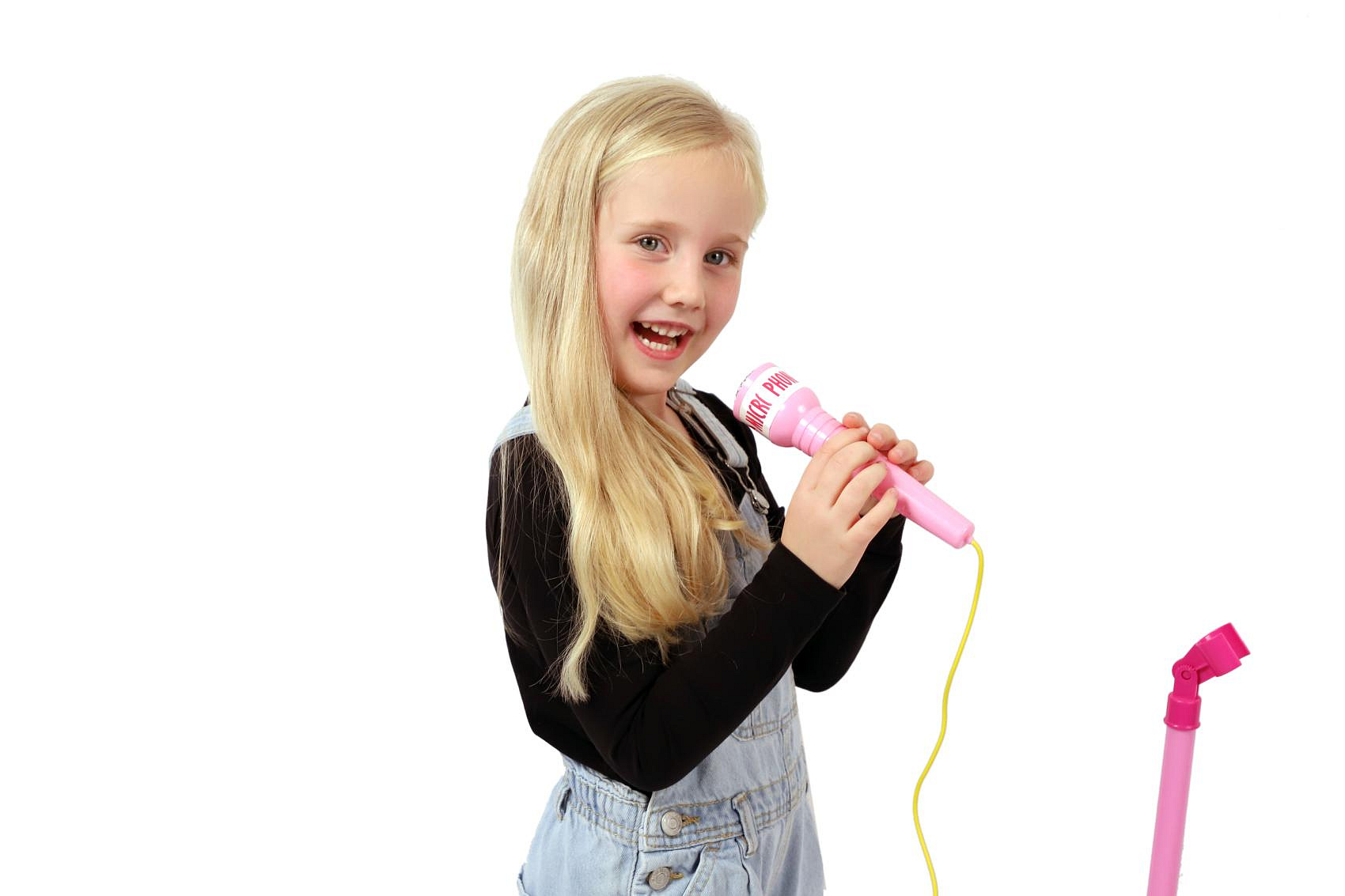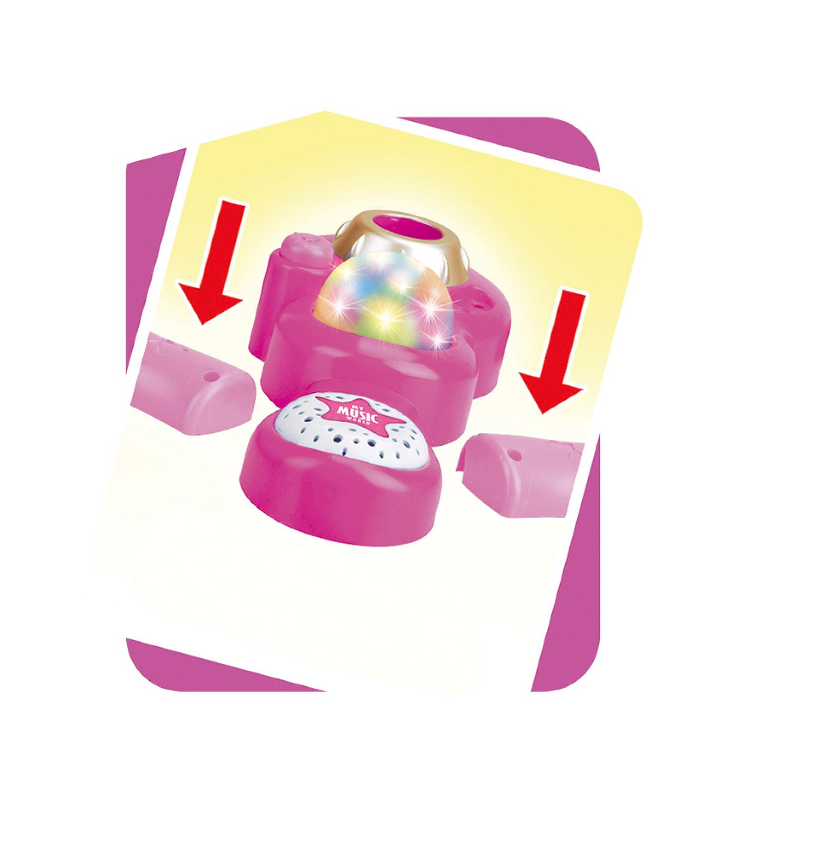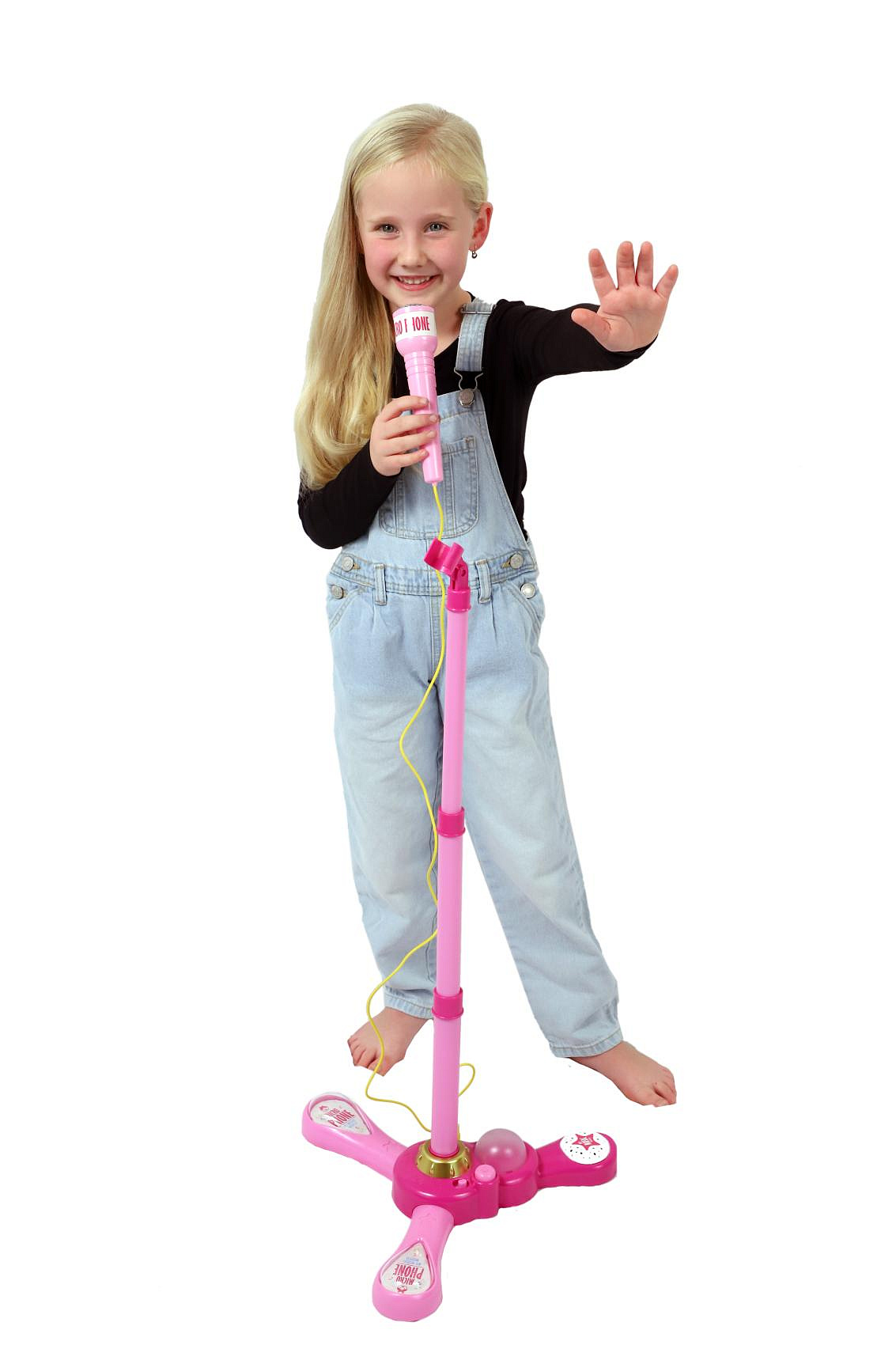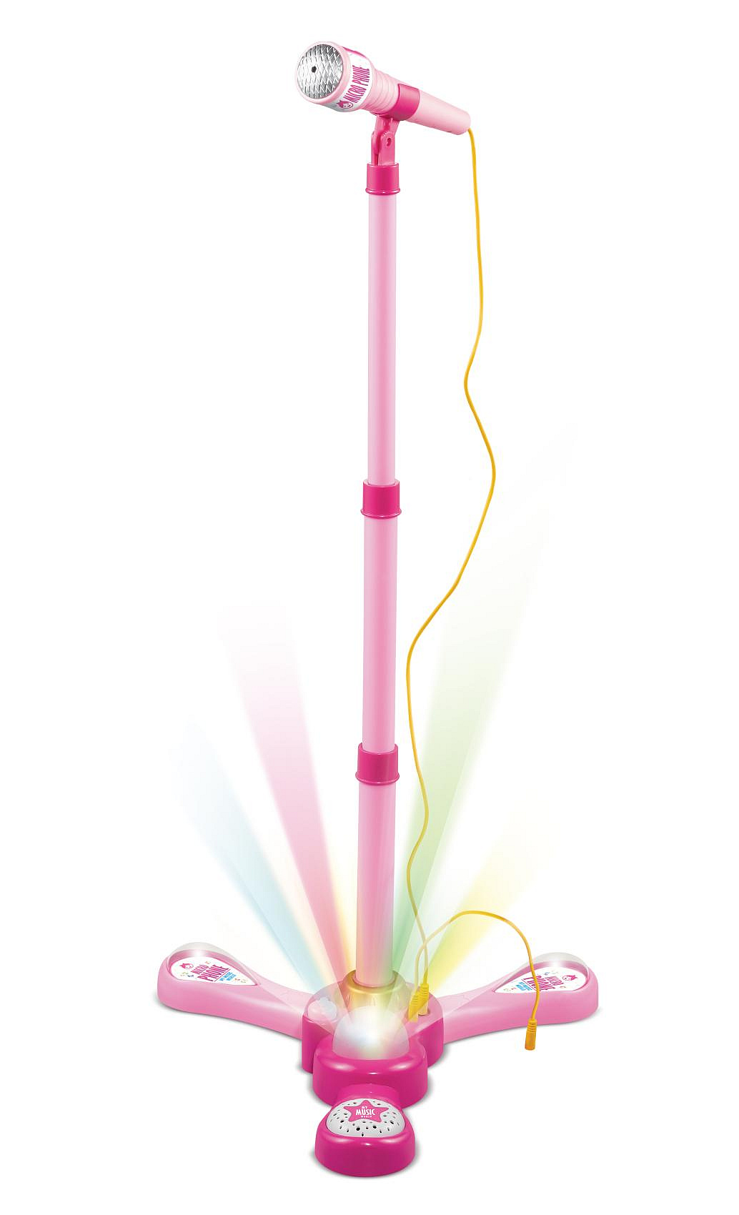 Mikrofon karaoke růžový plast na baterie se světlem se zvukem v krabici 17x34x7cm
