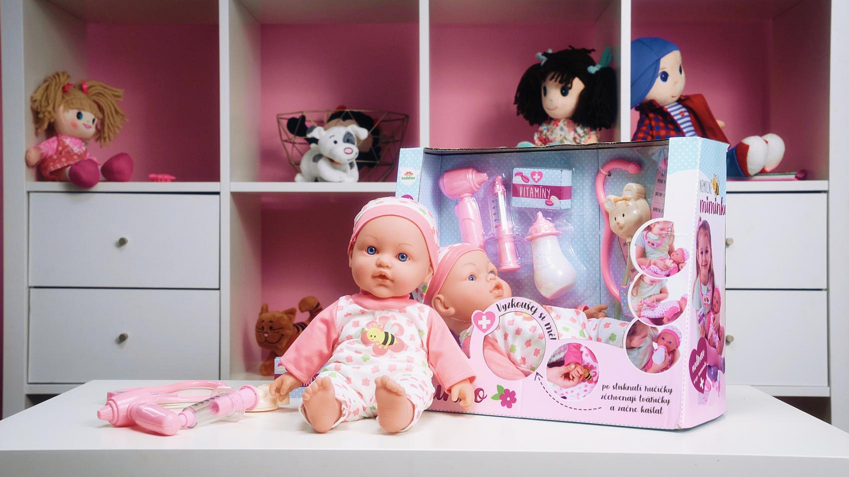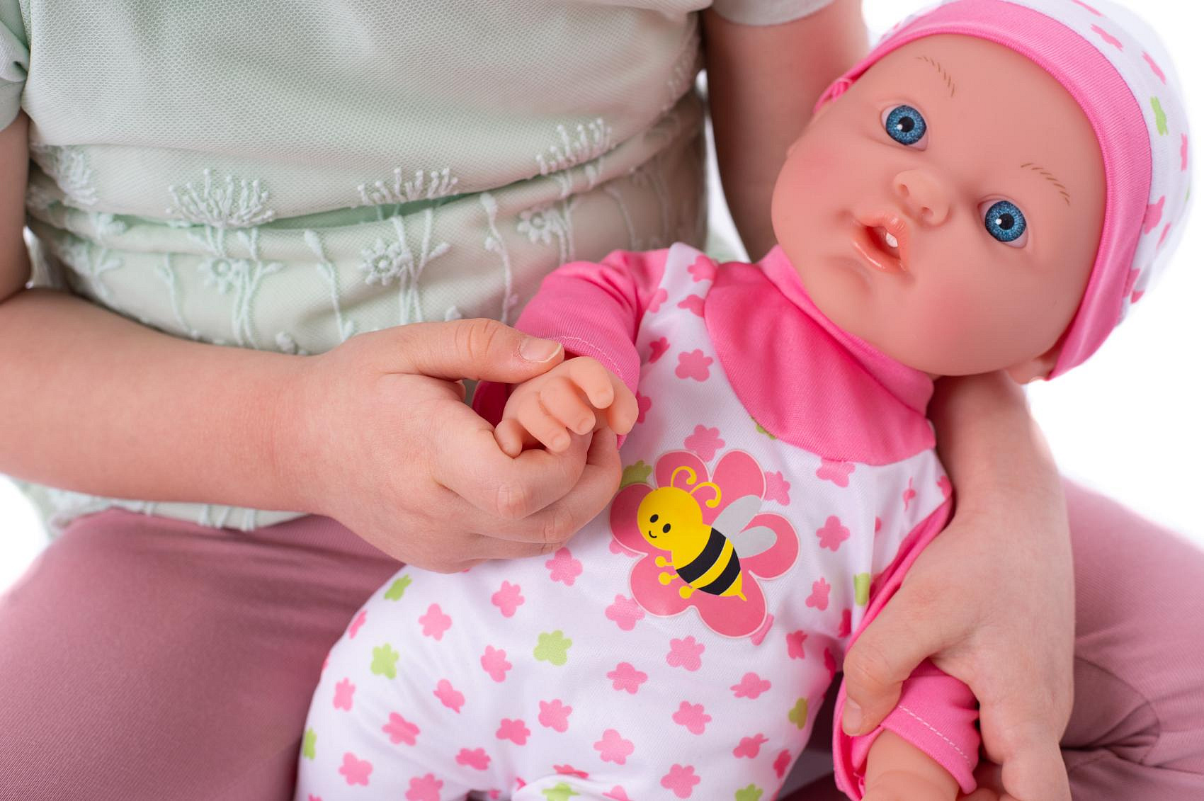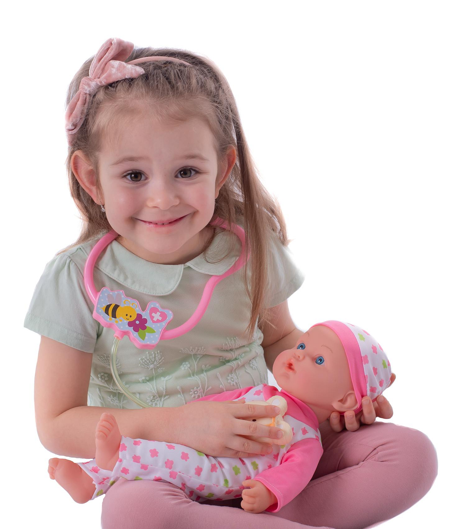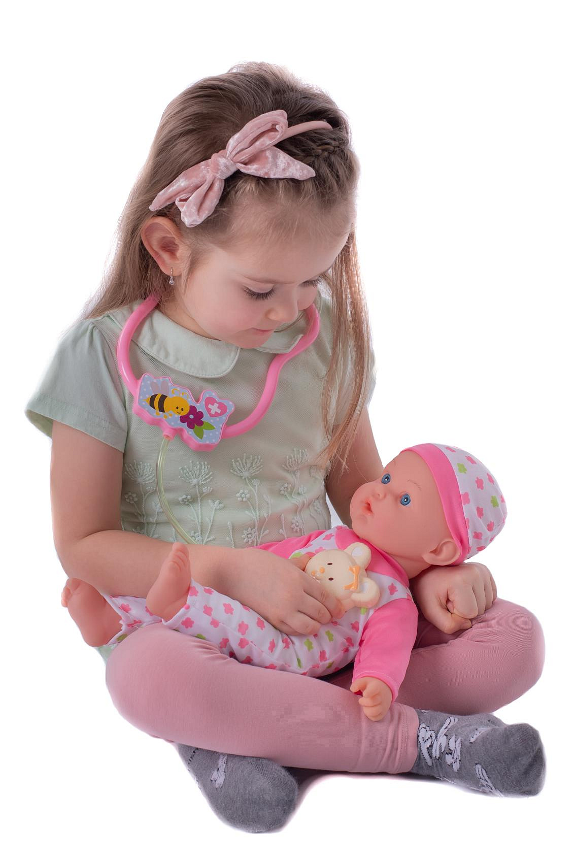 Miminko nemocné měkké tělo 36cm guma s doplňky na baterie se zvukem se světlem v krabici 37x31x17cm