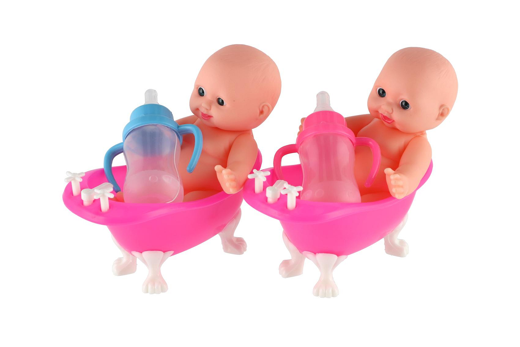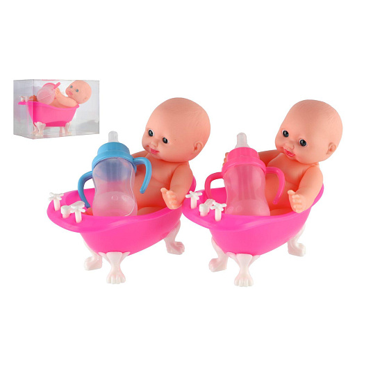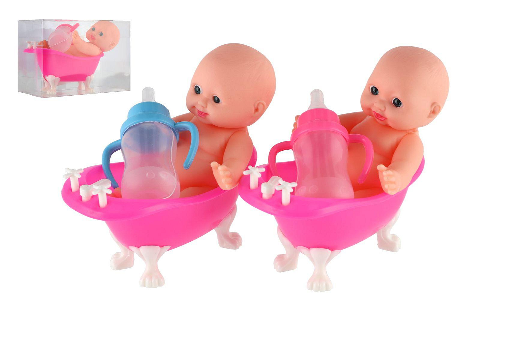 Miminko ve vaničce guma/plast s lahvičkou 10cm v plastové krabičce 13x9x6,5cm
