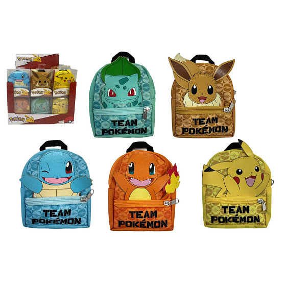 Mini batoh/batůžek Pokémon látka 9x11cm 5 barev v plastové krabičce 24ks v boxu