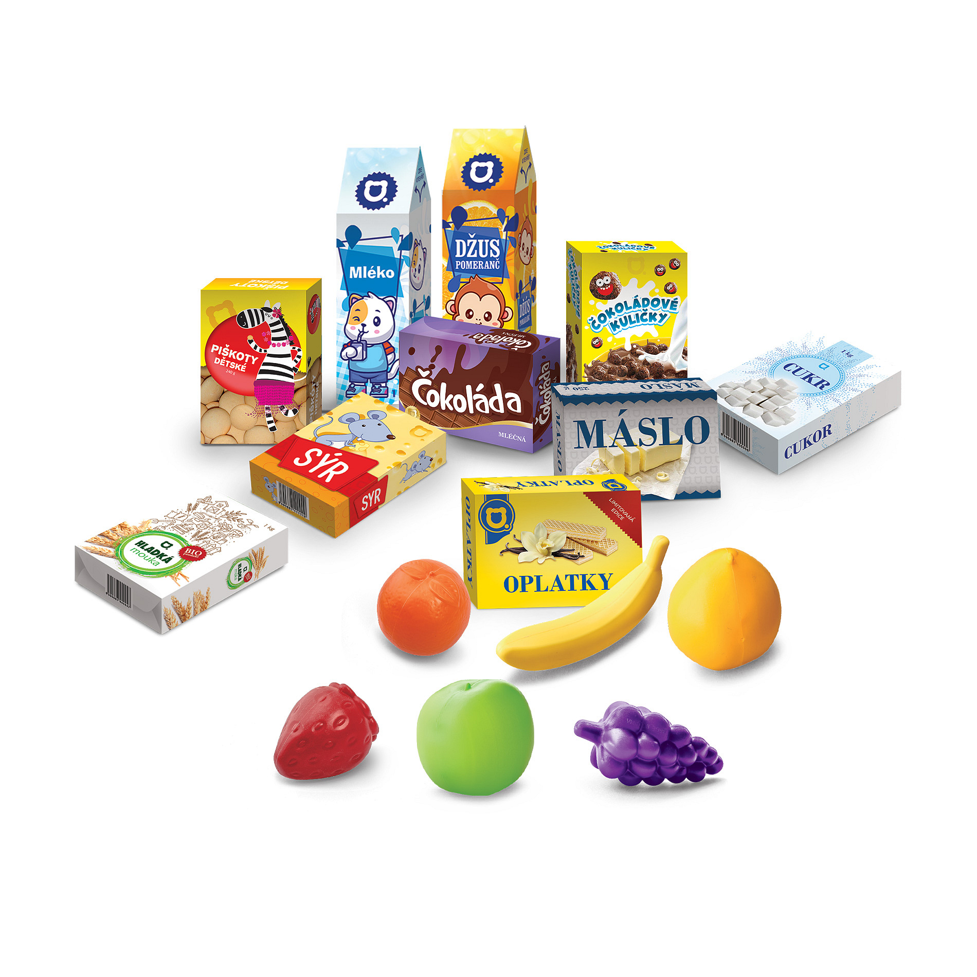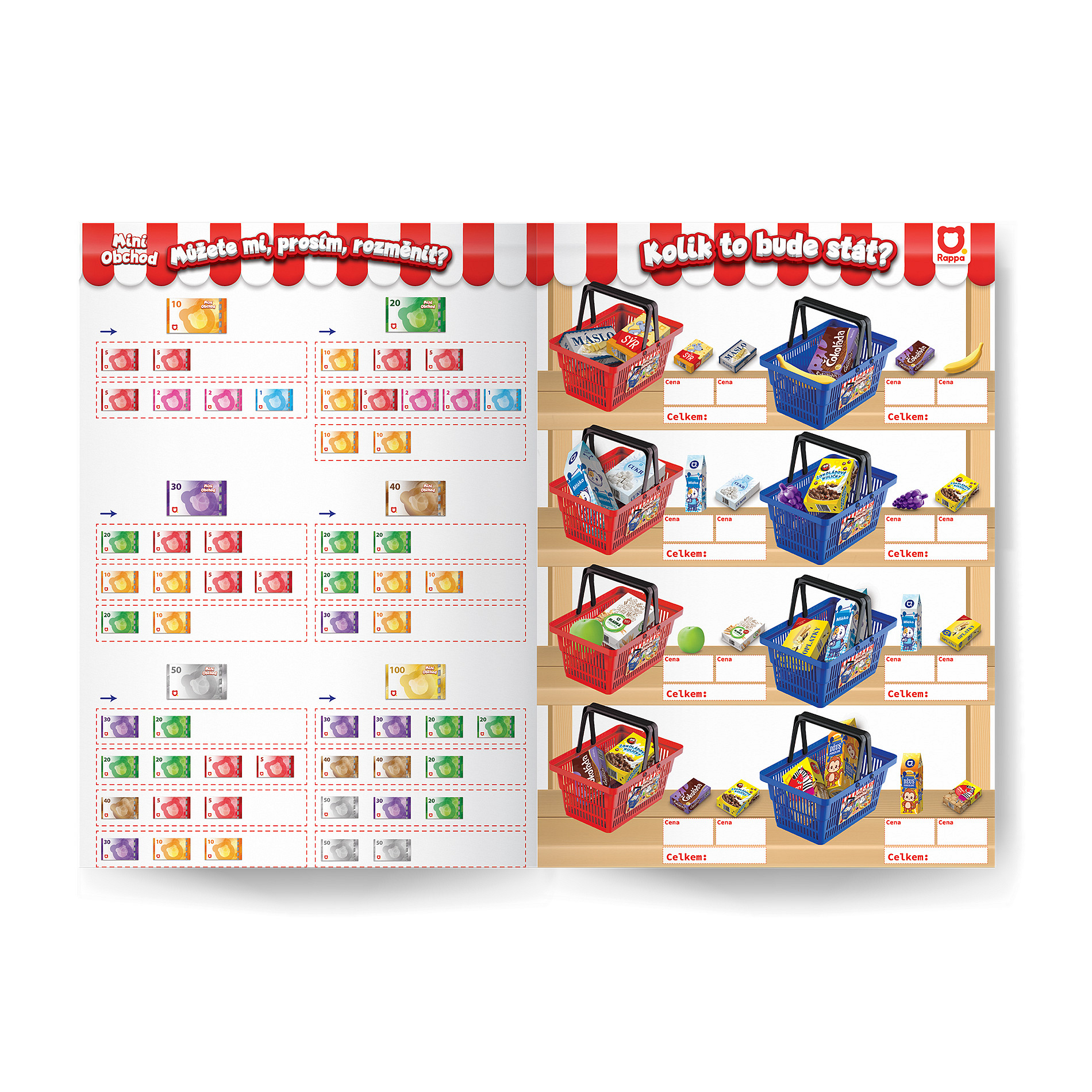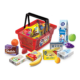 MINI OBCHOD - nákupní košík s doplňky a učením jak nakupovat - červený