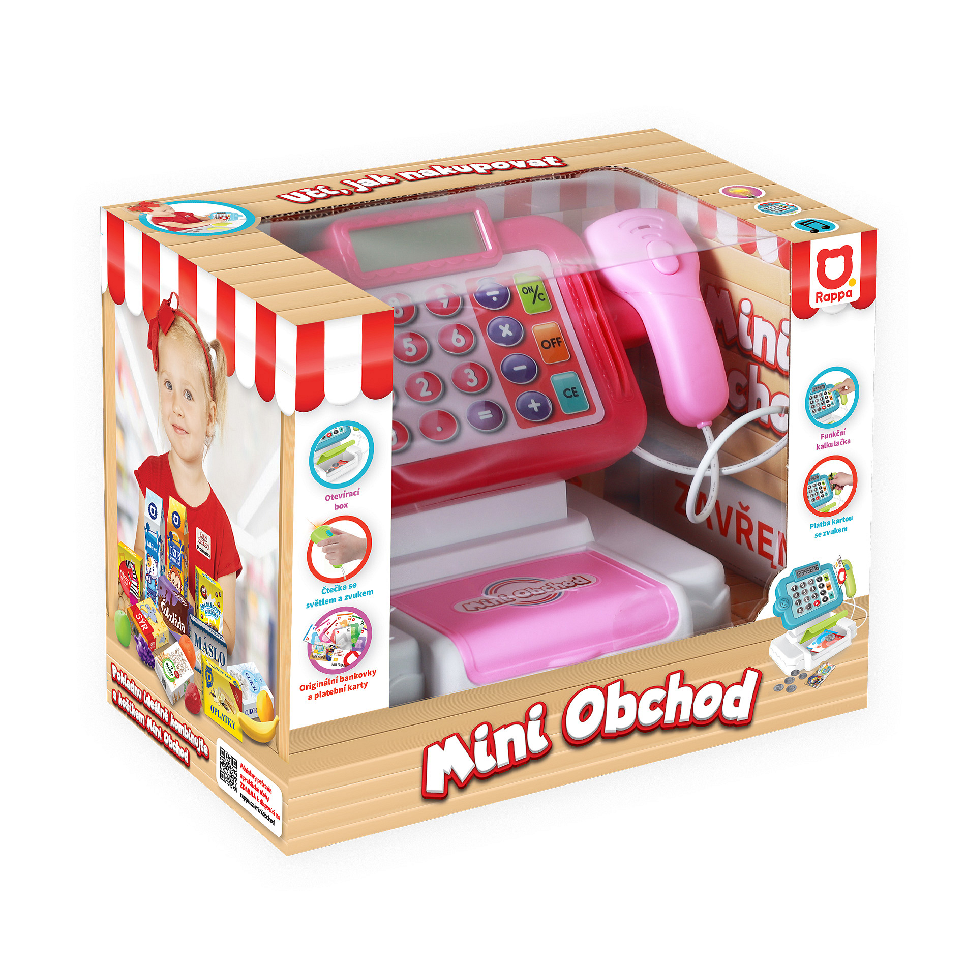 MINI OBCHOD - pokladna česká s učením jak nakupovat - růžová