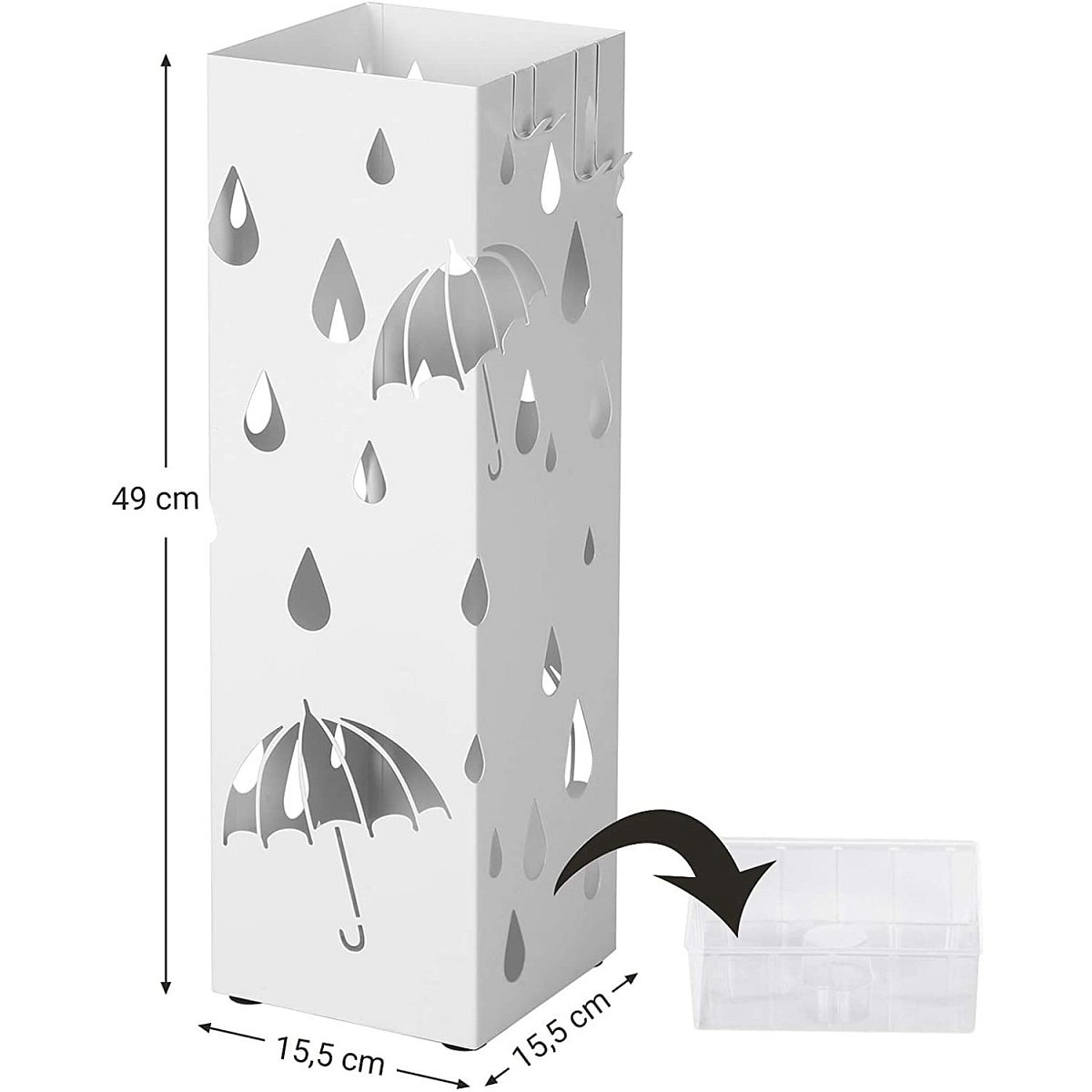• The umbrella is equipped with a removable plastic water tray that will protect the floor from moisture . You no longer have to dry the unfolded umbrella on the tiles, just place the wet umbrella inside the stand and all the water will flow straight into the drainer.